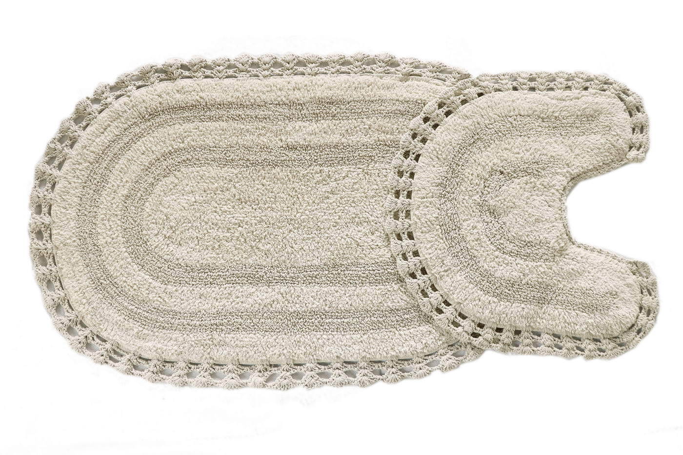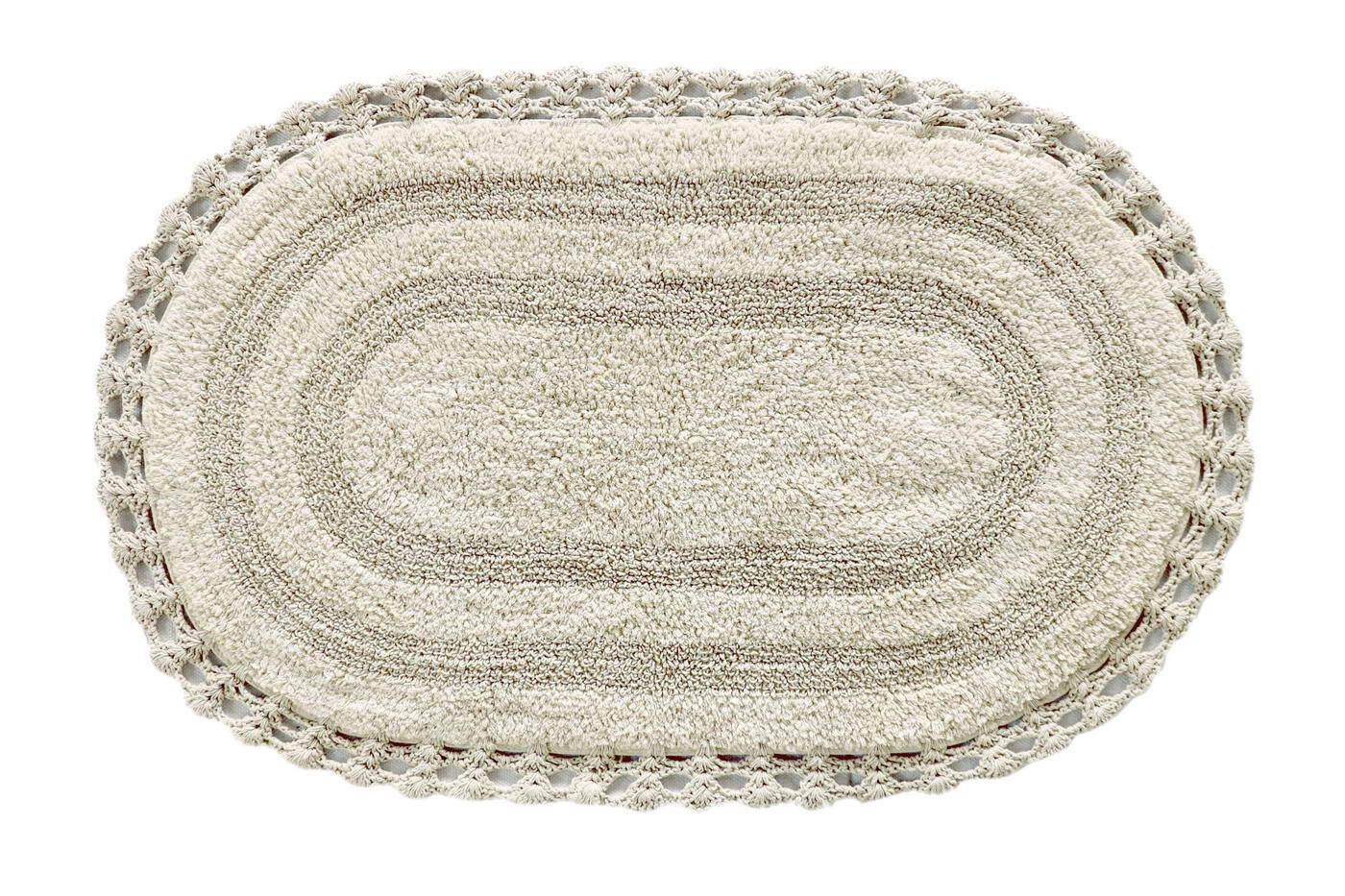 Кружевные коврики для ванной комнаты из высококачественного 100% хлопка не только мгновенно впитывают влагу, они мягкие и приятные на ощупь, а цветовая палитра воссоздает природные оттенки. Коврики из натуральных материалов прекрасно подойдут для современных, классических, а также для интерьеров в стиле «прованс».