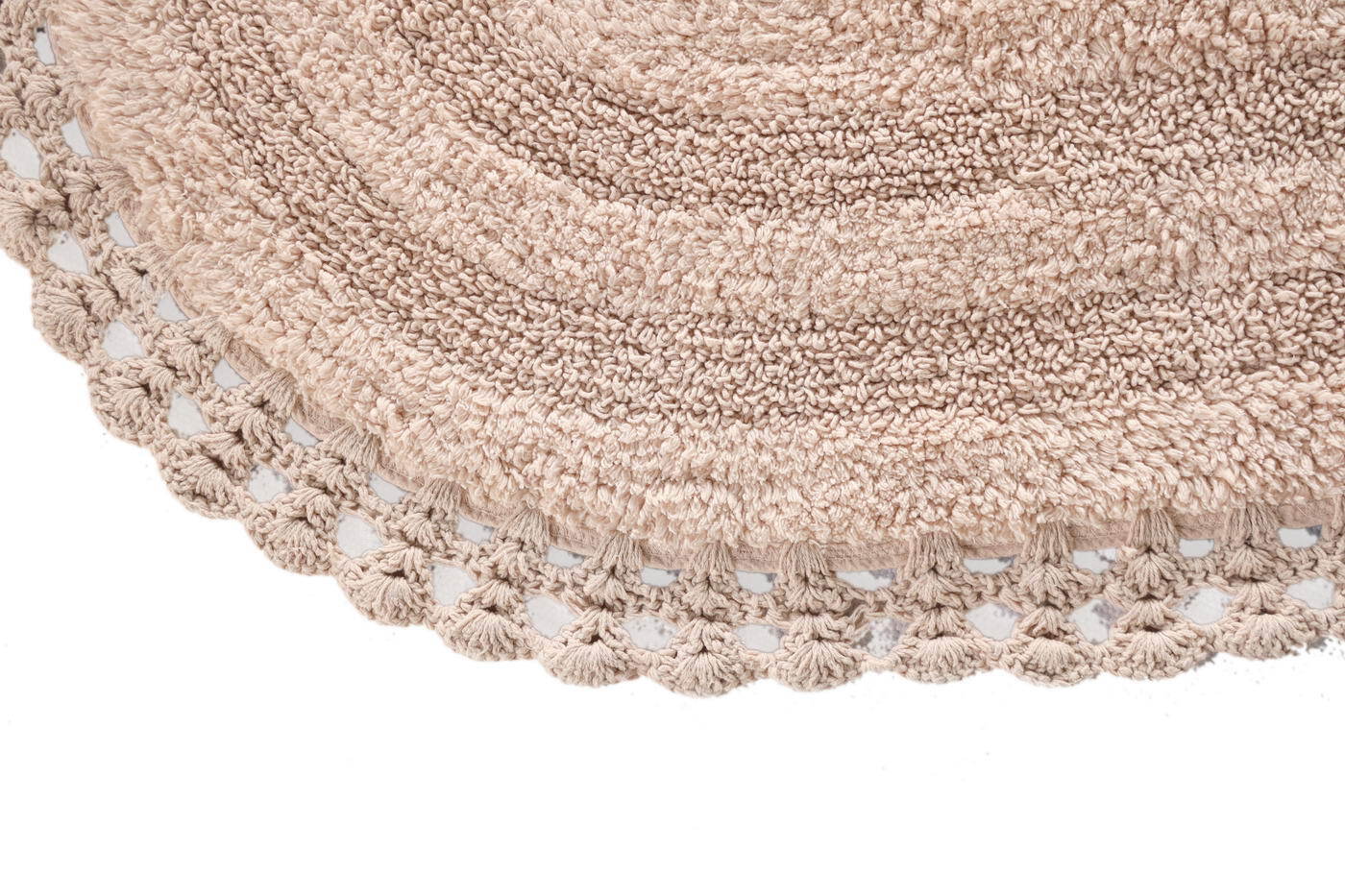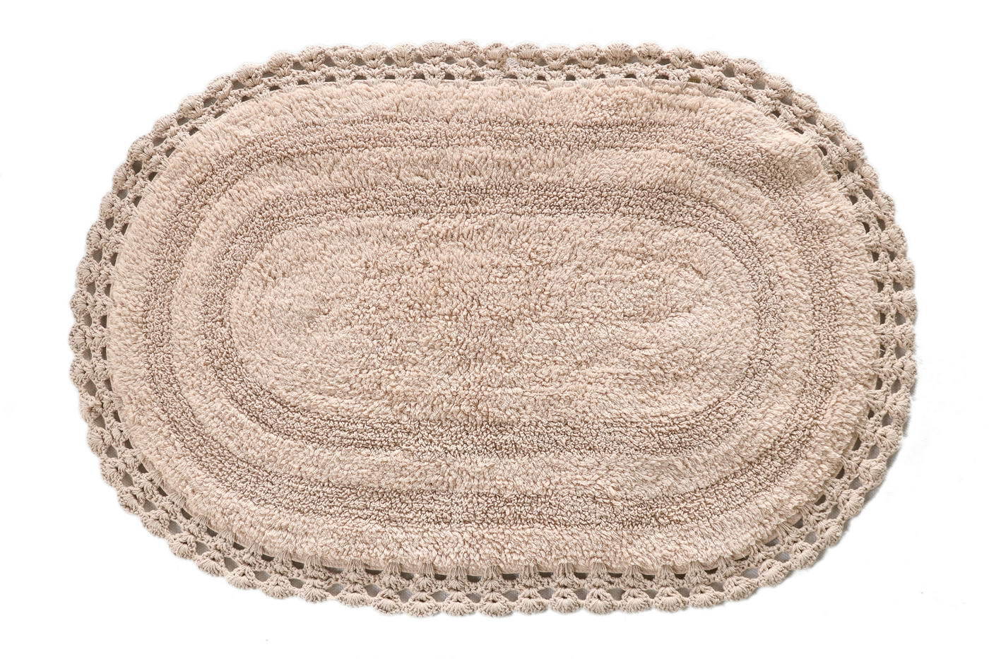 Кружевные коврики для ванной комнаты из высококачественного 100% хлопка не только мгновенно впитывают влагу, они мягкие и приятные на ощупь, а цветовая палитра воссоздает природные оттенки. Коврики из натуральных материалов прекрасно подойдут для современных, классических, а также для интерьеров в стиле «прованс».