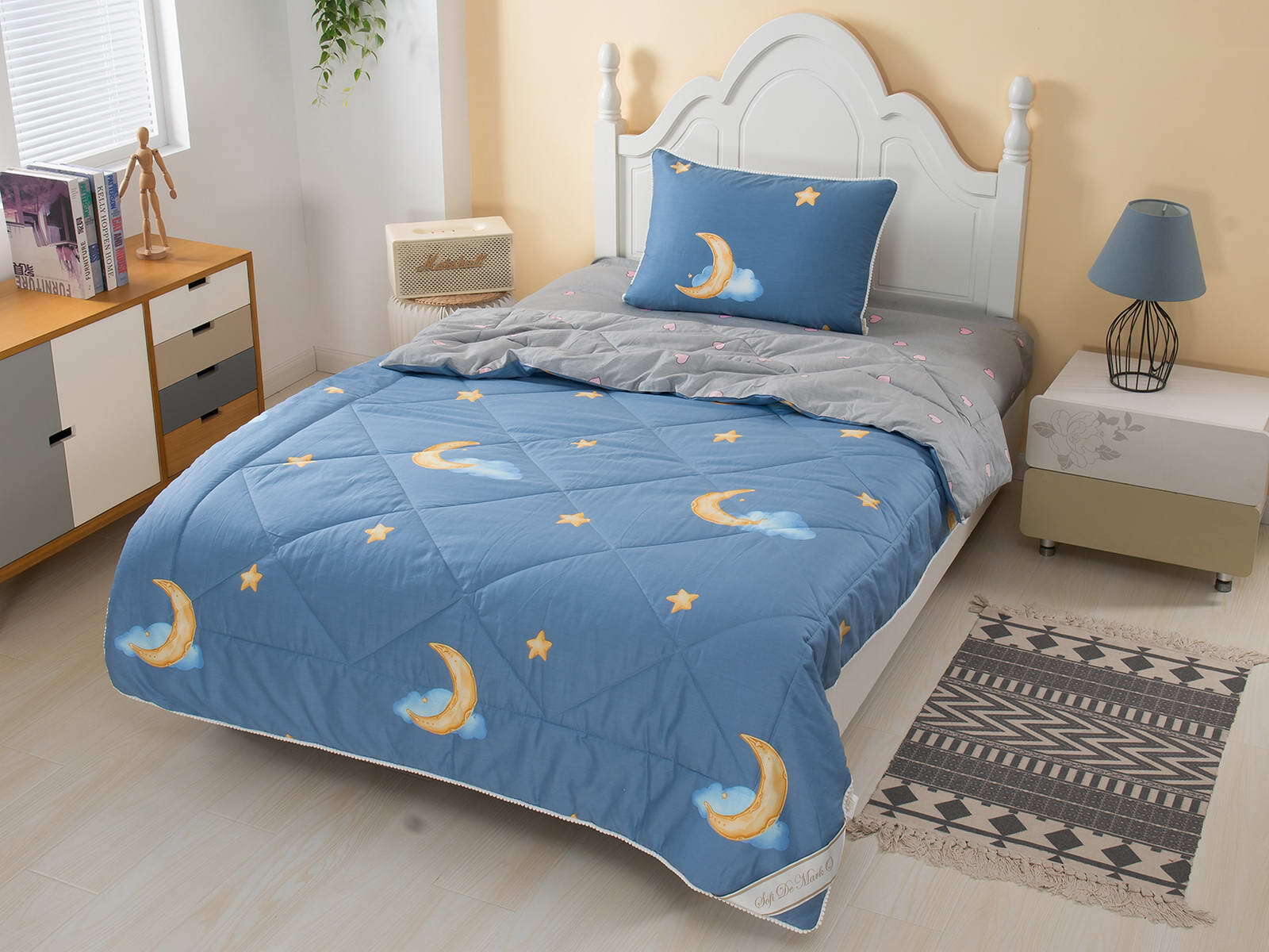 Само одеяло тонкое и легкое, но под ним ребенку не будет холодно зимой или жарко летом. Такое одеяло можно использовать в любое время года, 100% хлопок гарантирует качественный сон, т.к. натуральная ткань хорошо впитывает влагу и позволяет коже дышать. Натуральные материалы не вызывают аллергии. Огромная палитра оттенков и яркие дизайны комплектов понравятся детям и подросткам.