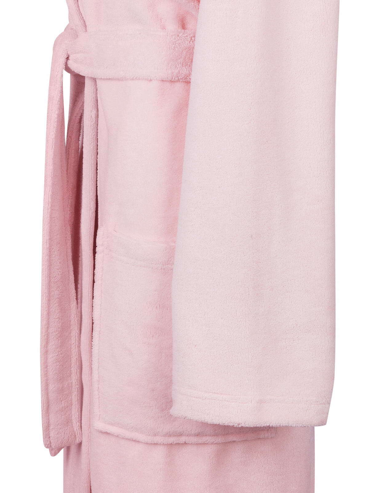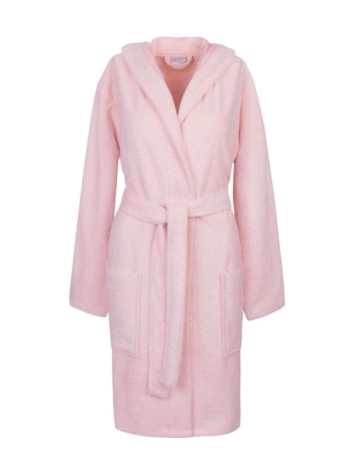 Комфортное кимоно прямого силуэта с капюшоном-воротником, запахом на поясе, длинными рукавами и вместительными накладными карманами идеально подойдет в качестве домашнего или банного халата. Модель представлена в нежно-розовом, бежевом и светло-голубом оттенках.