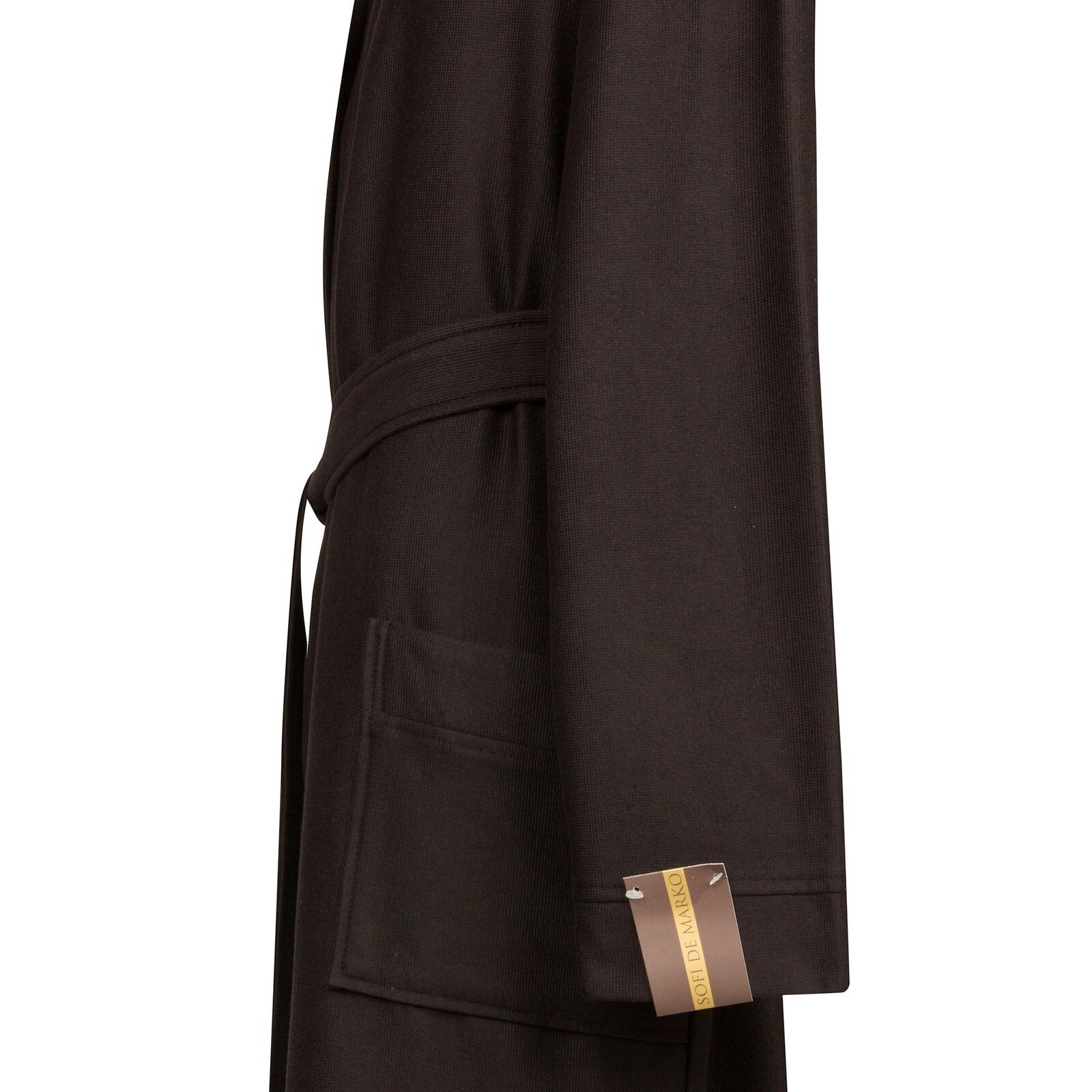 Линейка мужских халатов произведена из умеренных цветов в различных композициях: блестящий черный, нейтральный серый, благородный синий.