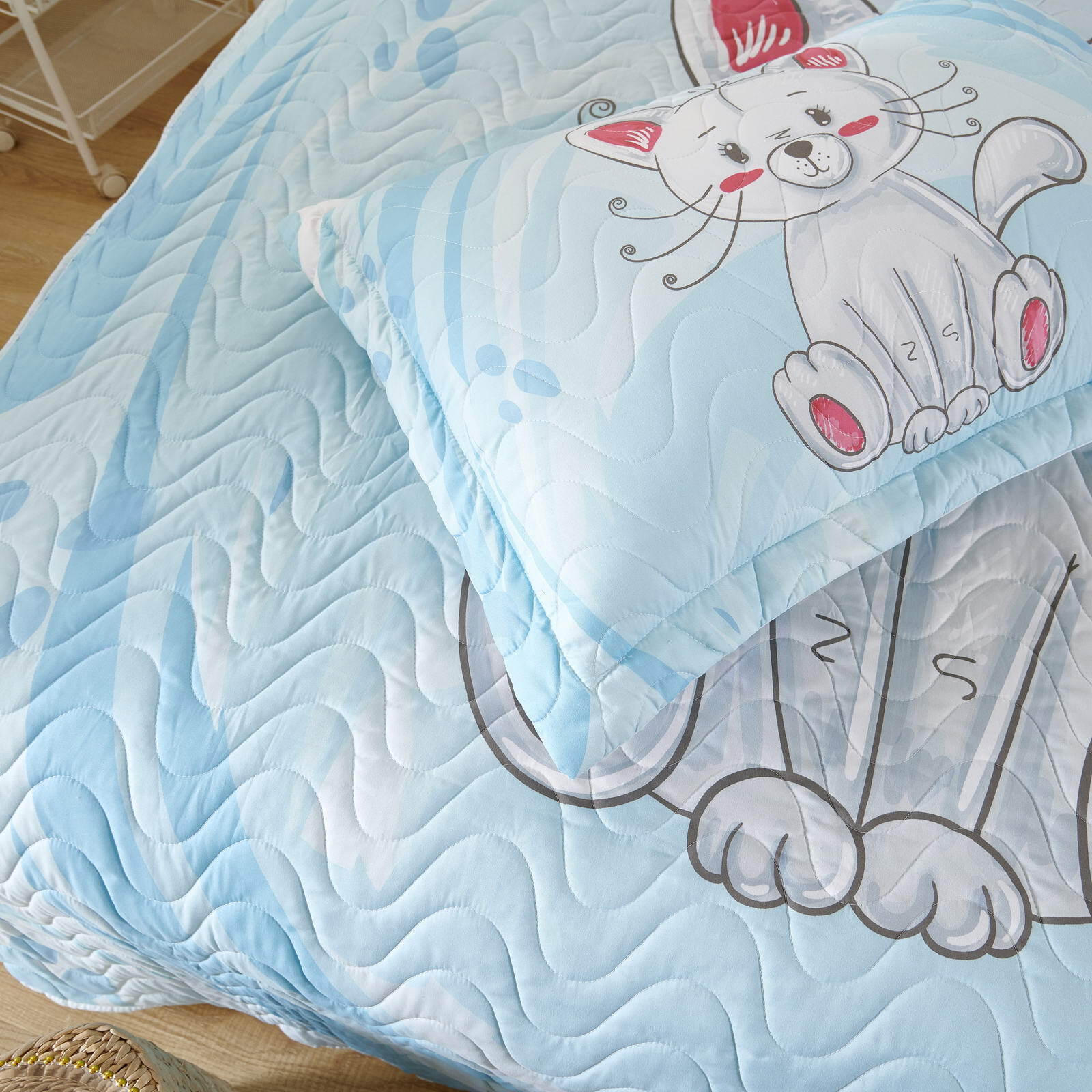 Детские покрывала - это особая забота об уюте и комфорте ребенка. Красивое, стеганое покрывало коллекции «Sunny day» придаст любой детской спальне яркую индивидуальность. Волнистые стежки делают изящные покрывала еще более выразительными и изящными. К ним в комплекте идут наволочки, у них есть интересная особенность, которая непременно понравится ребенку– небольшие ушки.