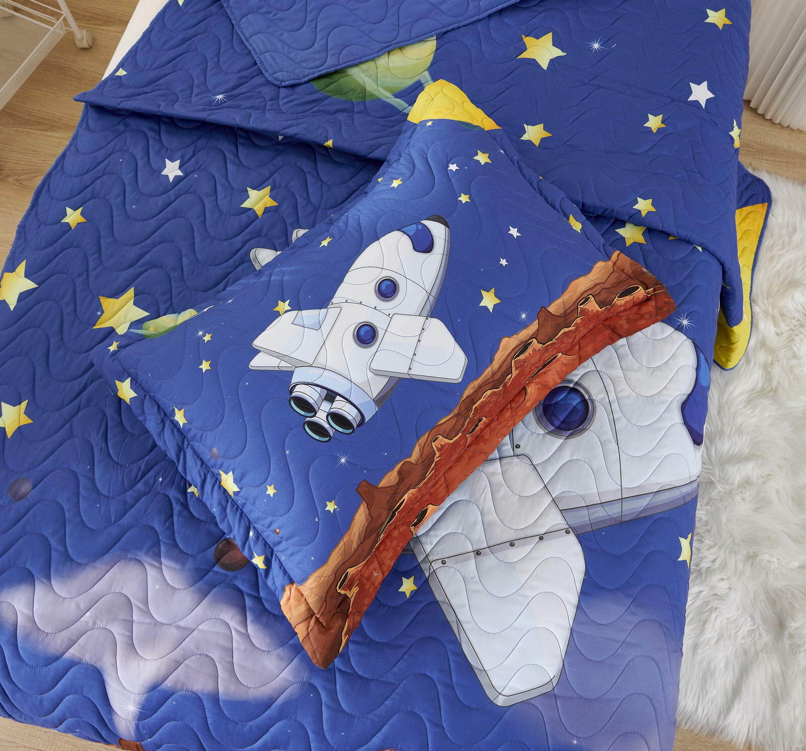 Детские покрывала - это особая забота об уюте и комфорте ребенка. Красивое, стеганое покрывало коллекции «Sunny day» придаст любой детской спальне яркую индивидуальность. Волнистые стежки делают изящные покрывала еще более выразительными и изящными. К ним в комплекте идут наволочки, у них есть интересная особенность, которая непременно понравится ребенку– небольшие ушки.
