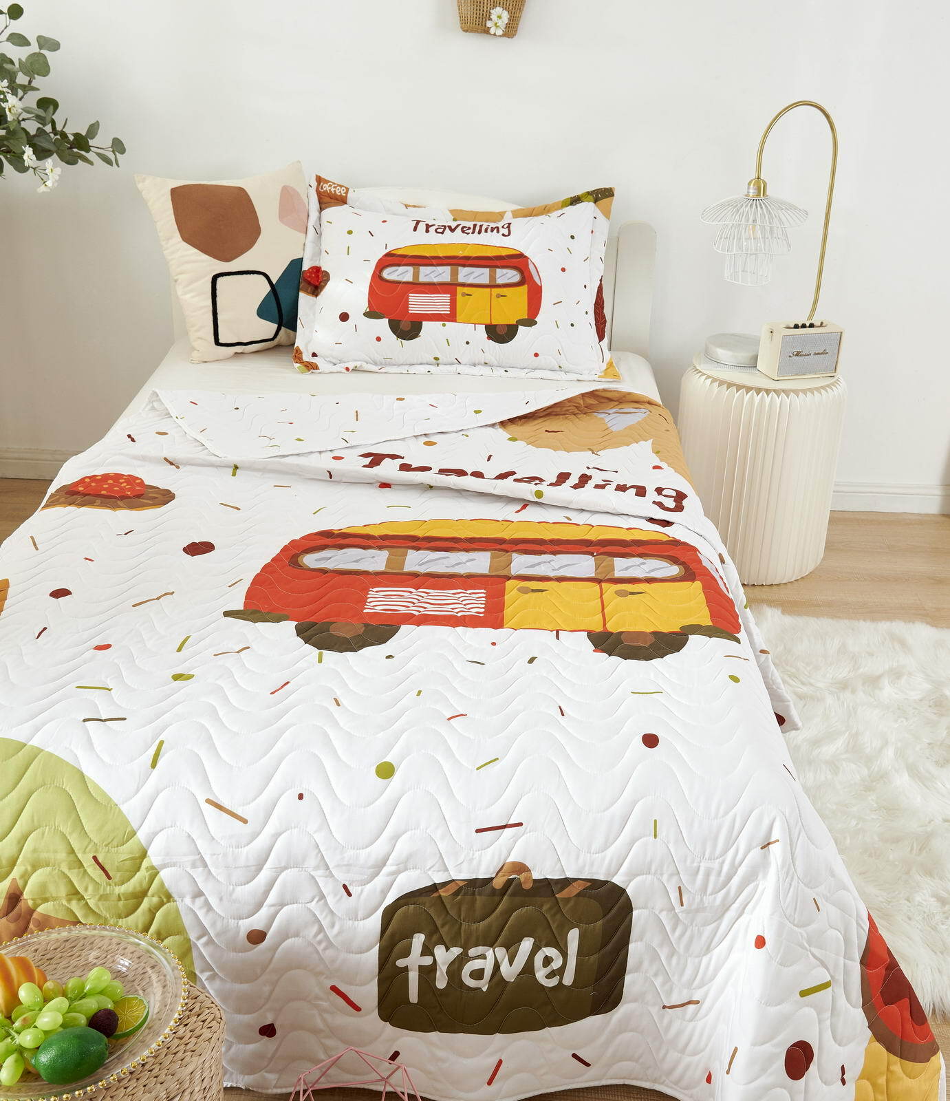 Детские покрывала - это особая забота об уюте и комфорте ребенка. Красивое, стеганое покрывало коллекции «Sunny day» придаст любой детской спальне яркую индивидуальность. Волнистые стежки делают изящные покрывала еще более выразительными и изящными. К ним в комплекте идут наволочки, у них есть интересная особенность, которая непременно понравится ребенку– небольшие ушки.
