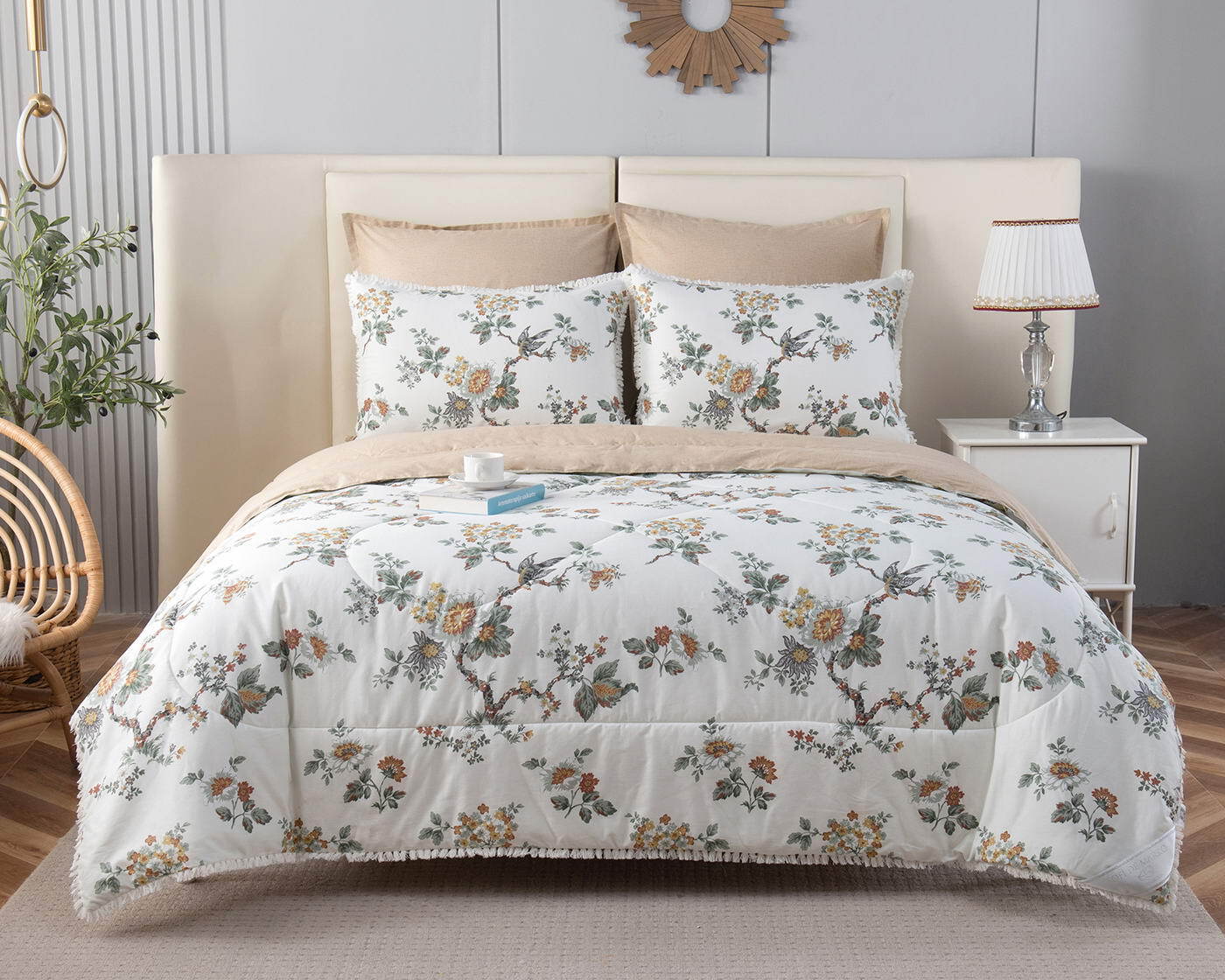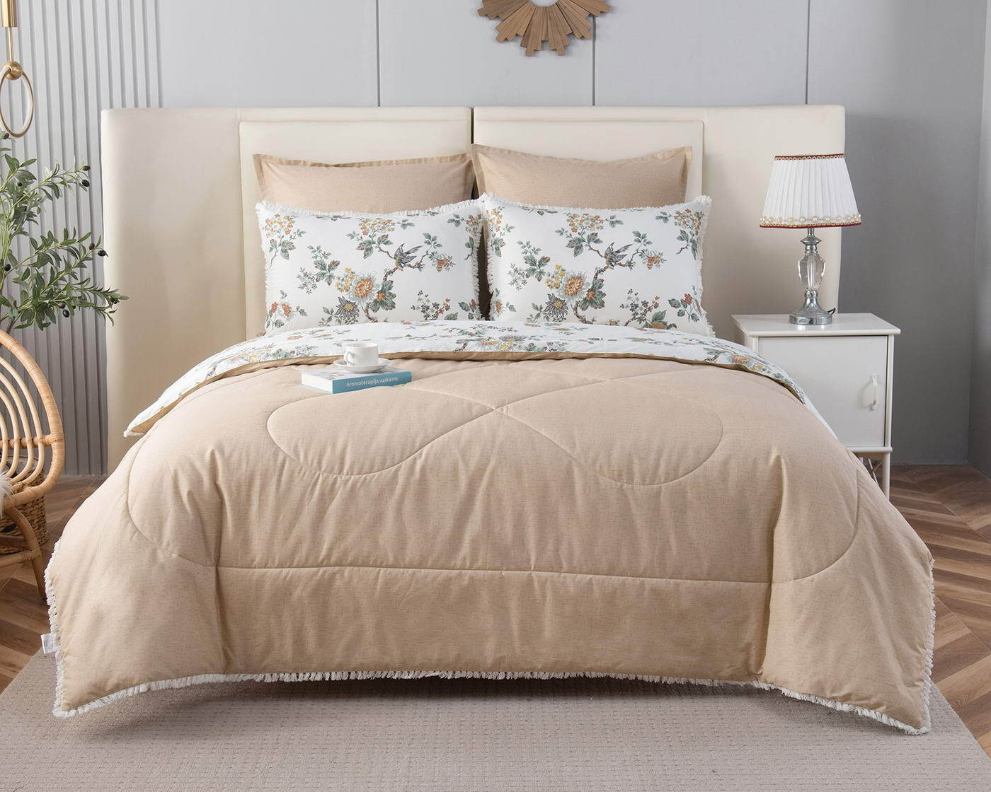 В комплекты комфортеров с одеялом Бернадетт входят наволочки, простыня и легкое всесезонное одеяло. Оцените это современное и очень удобное решение, которое идеально подходит тем, кто не любит возиться с пододеяльниками. Само одеяло тонкое и легкое, но под ним вам не будет холодно зимой или жарко летом. Такое одеяло можно использовать в любое время года, 100% хлопок гарантирует качественный сон, т.к. натуральная ткань не вызывает аллергии, хорошо впитывает влагу и позволяет коже дышать. Прочная и красивая ткань сатин, из которого выполнен комплект, мягкая и гладкая на ощупь, при этом вещи не теряют форму. Набор с одеялом прослужит вам достаточно долго без потери своего качества, а рисунок не потускнеет даже после стирок. Комплект легко стирается в обычной машине и также легко гладится. В нашем магазине представлены комплекты в разных тонах и с различными рисунками на выбор. Наборы упакованы в красивые подарочные коробки и могут послужить отличным решением для подарка.