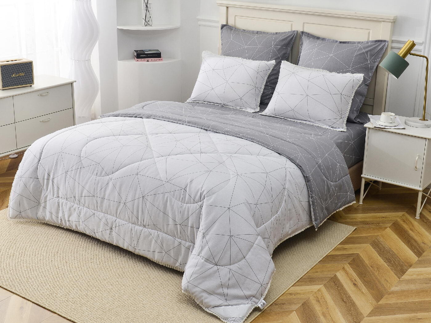 В комплекты комфортеров с одеялом Бернадетт входят наволочки, простыня и легкое всесезонное одеяло. Оцените это современное и очень удобное решение, которое идеально подходит тем, кто не любит возиться с пододеяльниками.
