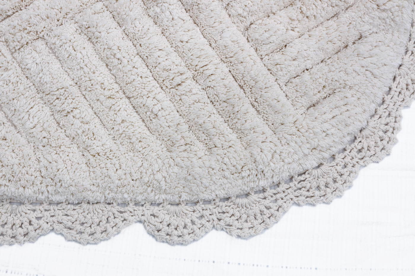 Кружевные коврики для ванной комнаты из высококачественного 100% хлопка не только мгновенно впитывают влагу, они мягкие и приятные на ощупь, а цветовая палитра воссоздает природные оттенки. Коврики из натуральных материалов прекрасно подойдут для современных, классических, а также для интерьеров в стиле «прованс».