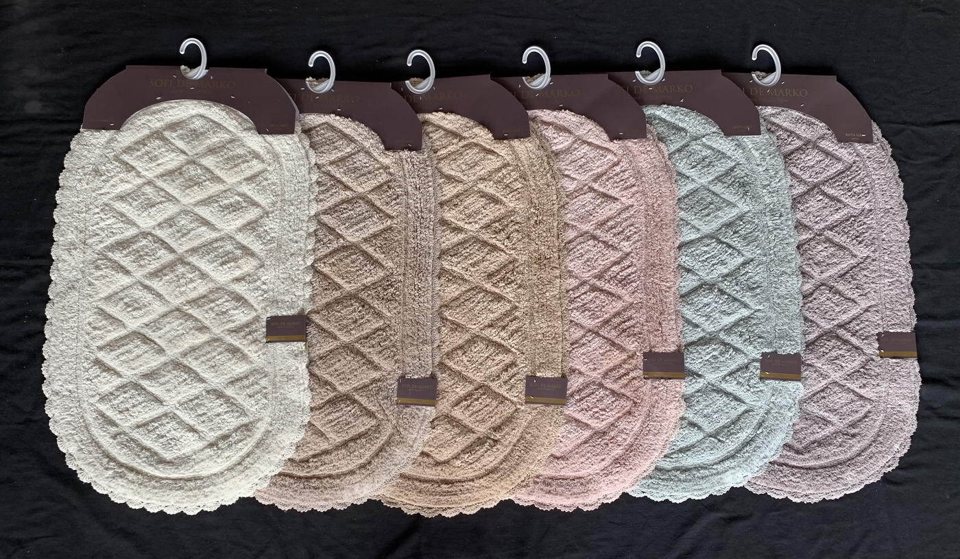 Кружевные коврики для ванной комнаты из высококачественного 100% хлопка не только мгновенно впитывают влагу, они мягкие и приятные на ощупь, а цветовая палитра воссоздает природные оттенки. Коврики из натуральных материалов прекрасно подойдут для современных, классических, а также для интерьеров в стиле «прованс».