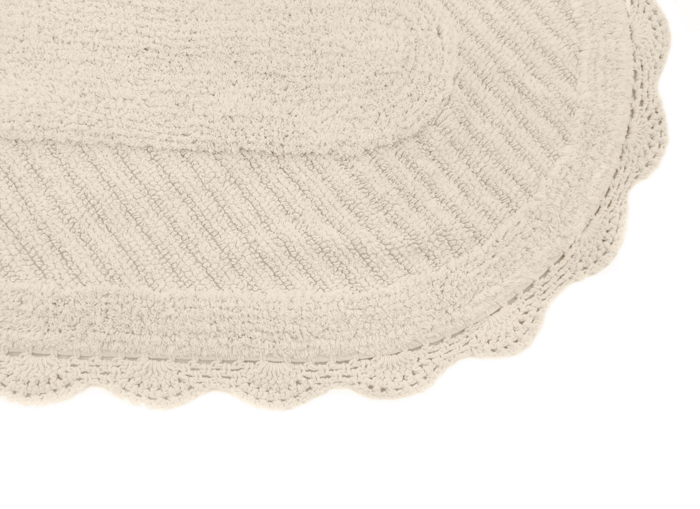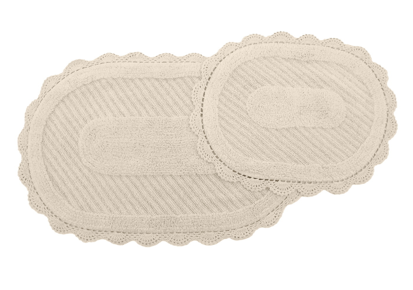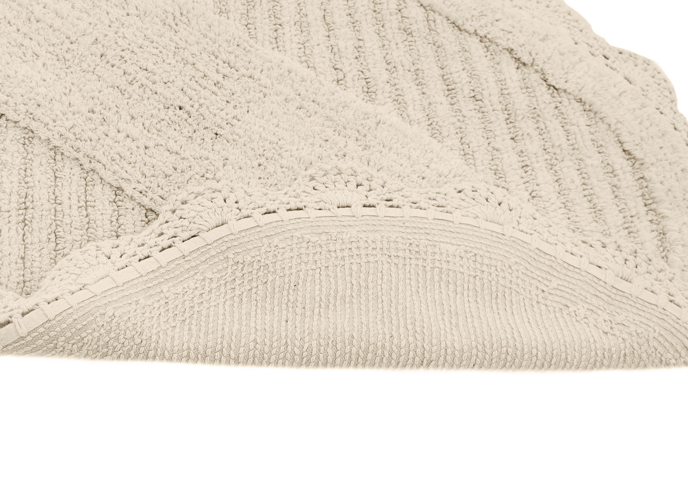 Кружевные коврики для ванной комнаты из высококачественного 100% хлопка не только мгновенно впитывают влагу, они мягкие и приятные на ощупь, а цветовая палитра воссоздает природные оттенки. Коврики из натуральных материалов прекрасно подойдут для современных, классических, а также для интерьеров в стиле «прованс».