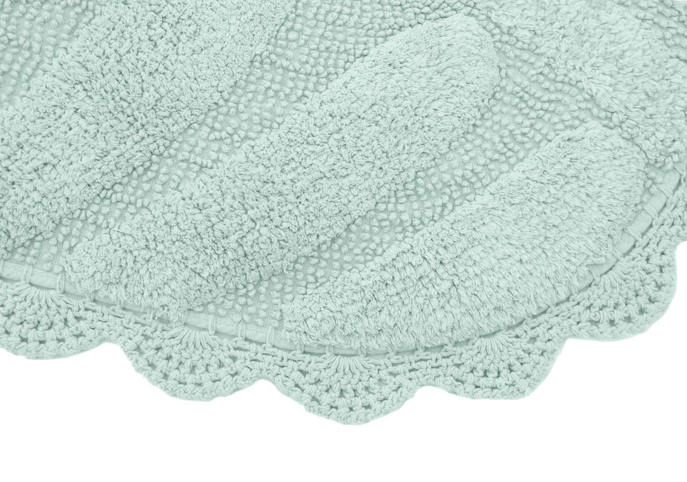 Кружевные коврики для ванной комнаты из высококачественного 100% хлопка не только мгновенно впитывают влагу, они мягкие и приятные на ощупь, а цветовая палитра воссоздает природные оттенки. Коврики из натуральных материалов прекрасно подойдут для современных, классических, а также для интерьеров в стиле «прованс».