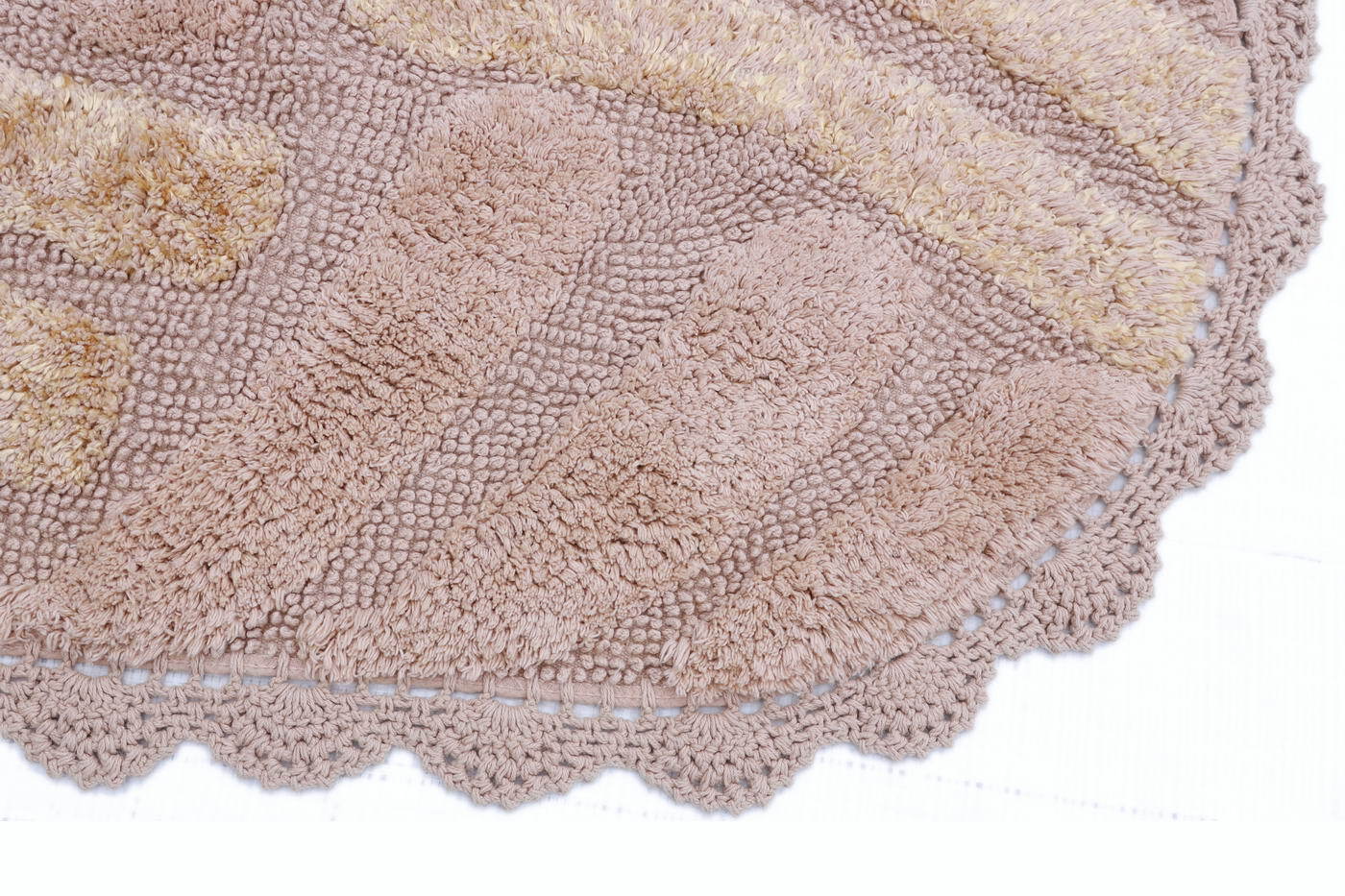 Кружевные коврики для ванной комнаты из высококачественного 100% хлопка не только мгновенно впитывают влагу, они мягкие и приятные на ощупь, а цветовая палитра воссоздает природные оттенки. Коврики из натуральных материалов прекрасно подойдут для современных, классических, а также для интерьеров в стиле «прованс».