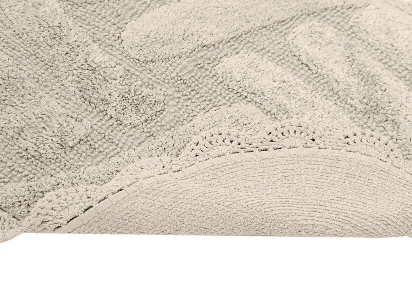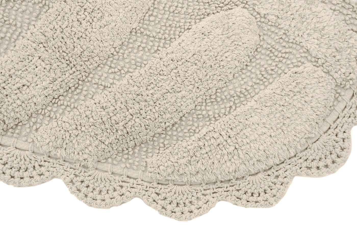 Кружевные коврики для ванной комнаты из высококачественного 100% хлопка не только мгновенно впитывают влагу, они мягкие и приятные на ощупь, а цветовая палитра воссоздает природные оттенки. Коврики из натуральных материалов прекрасно подойдут для современных, классических, а также для интерьеров в стиле «прованс».