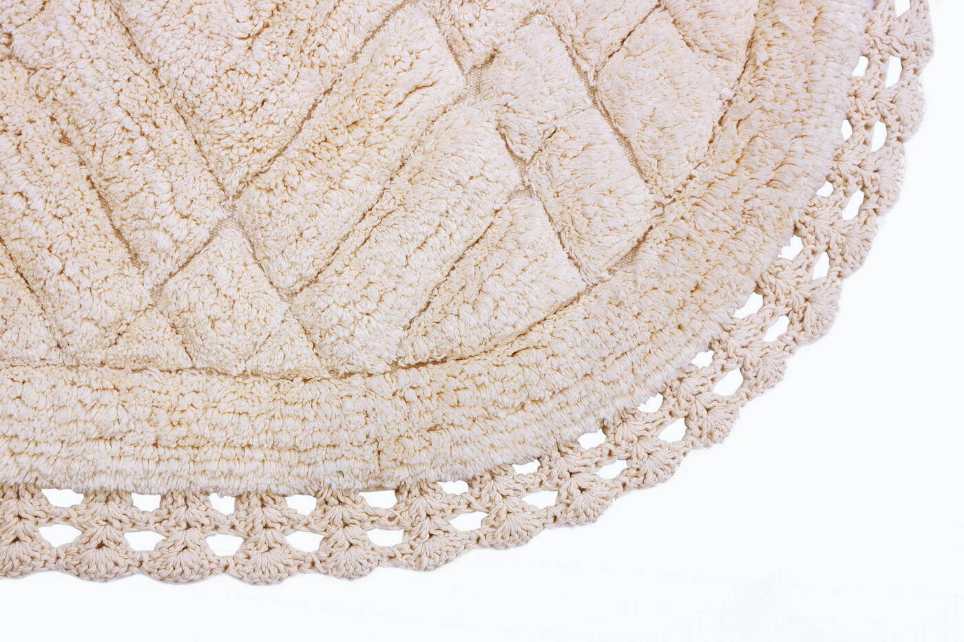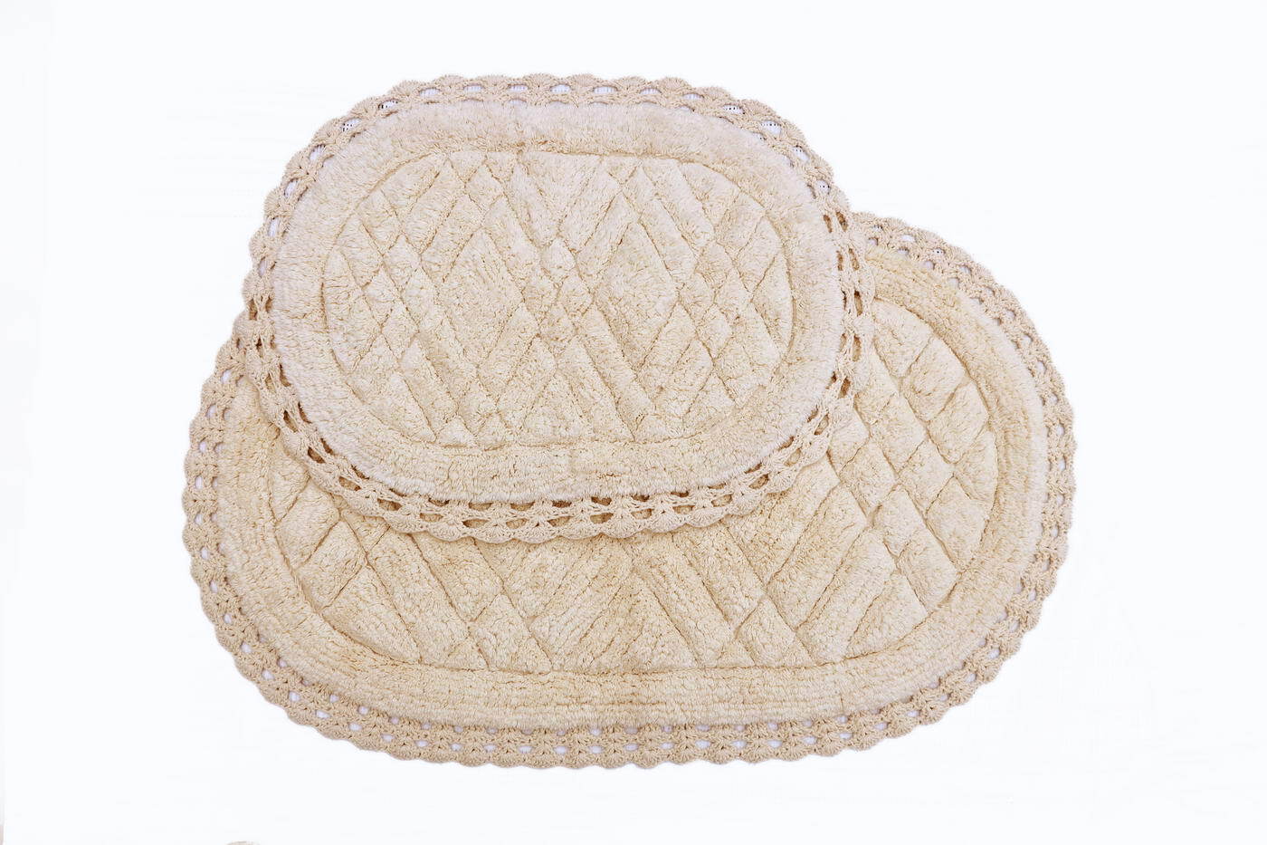 Кружевные коврики для ванной комнаты из высококачественного 100% хлопка не только мгновенно впитывают влагу, они мягкие и приятные на ощупь, а цветовая палитра воссоздает природные оттенки. Коврики из натуральных материалов прекрасно подойдут для современных, классических, а также для интерьеров в стиле «прованс».
