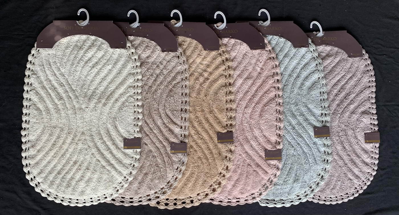 Кружевные коврики для ванной комнаты из высококачественного 100% хлопка не только мгновенно впитывают влагу, они мягкие и приятные на ощупь, а цветовая палитра воссоздает природные оттенки. Коврики из натуральных материалов прекрасно подойдут для современных, классических, а также для интерьеров в стиле «прованс».
