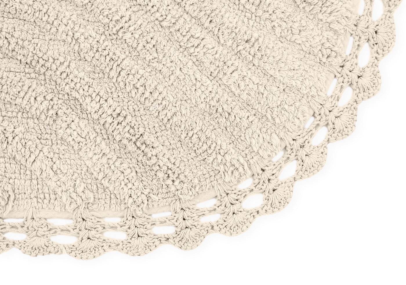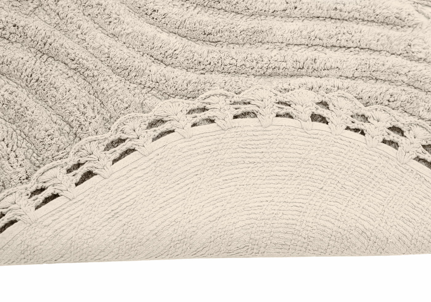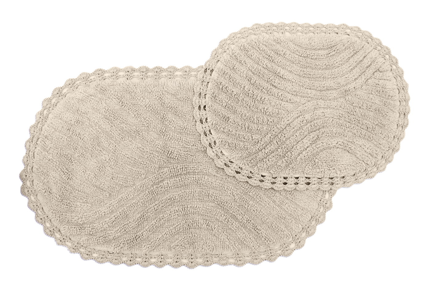 Кружевные коврики для ванной комнаты из высококачественного 100% хлопка не только мгновенно впитывают влагу, они мягкие и приятные на ощупь, а цветовая палитра воссоздает природные оттенки. Коврики из натуральных материалов прекрасно подойдут для современных, классических, а также для интерьеров в стиле «прованс».
