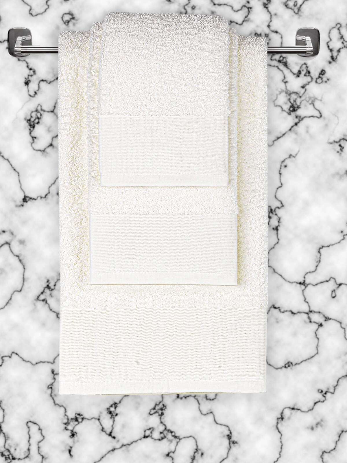 Лаконичный дизайн полотенец подойдет для любых ванных комнат и послужит хорошим дополнением интерьера! Полотенца имеют цветной край с узором в виде волны, они представлены в четырех размерах. Такие полотенца может стать украшением вашей ванной комнаты!