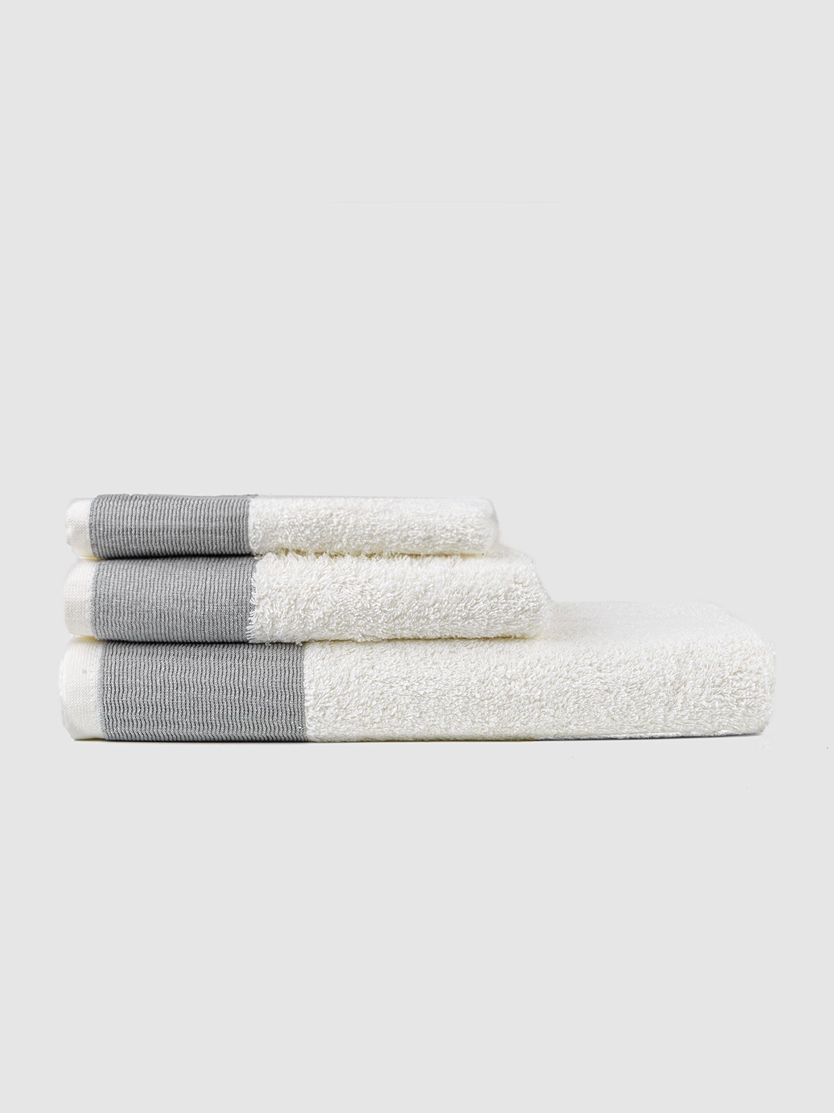 Лаконичный дизайн полотенец подойдет для любых ванных комнат и послужит хорошим дополнением интерьера! Полотенца имеют цветной край с узором в виде волны, они представлены в четырех размерах. Такие полотенца может стать украшением вашей ванной комнаты!