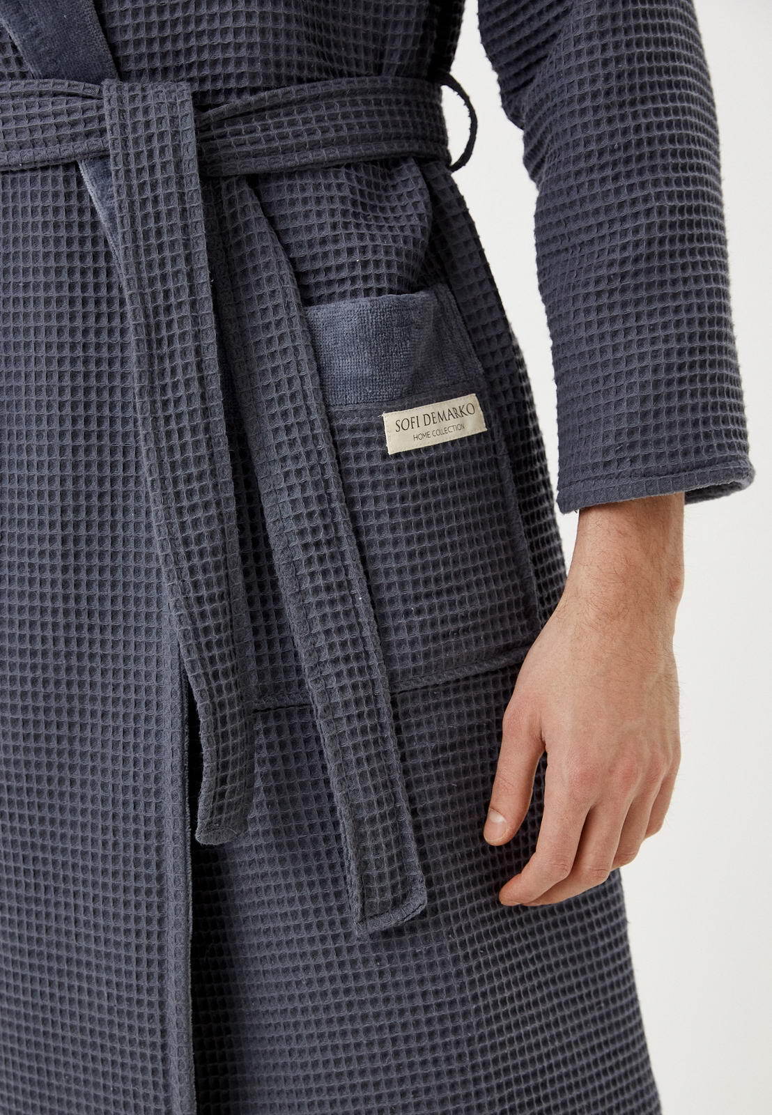 Модель Михаэль выполнена из плотной ткани. Халат двусторонний: сверху вафельная ткань, внутри мягкое махровое полотно. Утепленный халат Михаэль имеет английский ворот, два накладных кармана по бокам изделия с логотипом Sofi De Marko. Халат без застежек, запахивается на пояс.