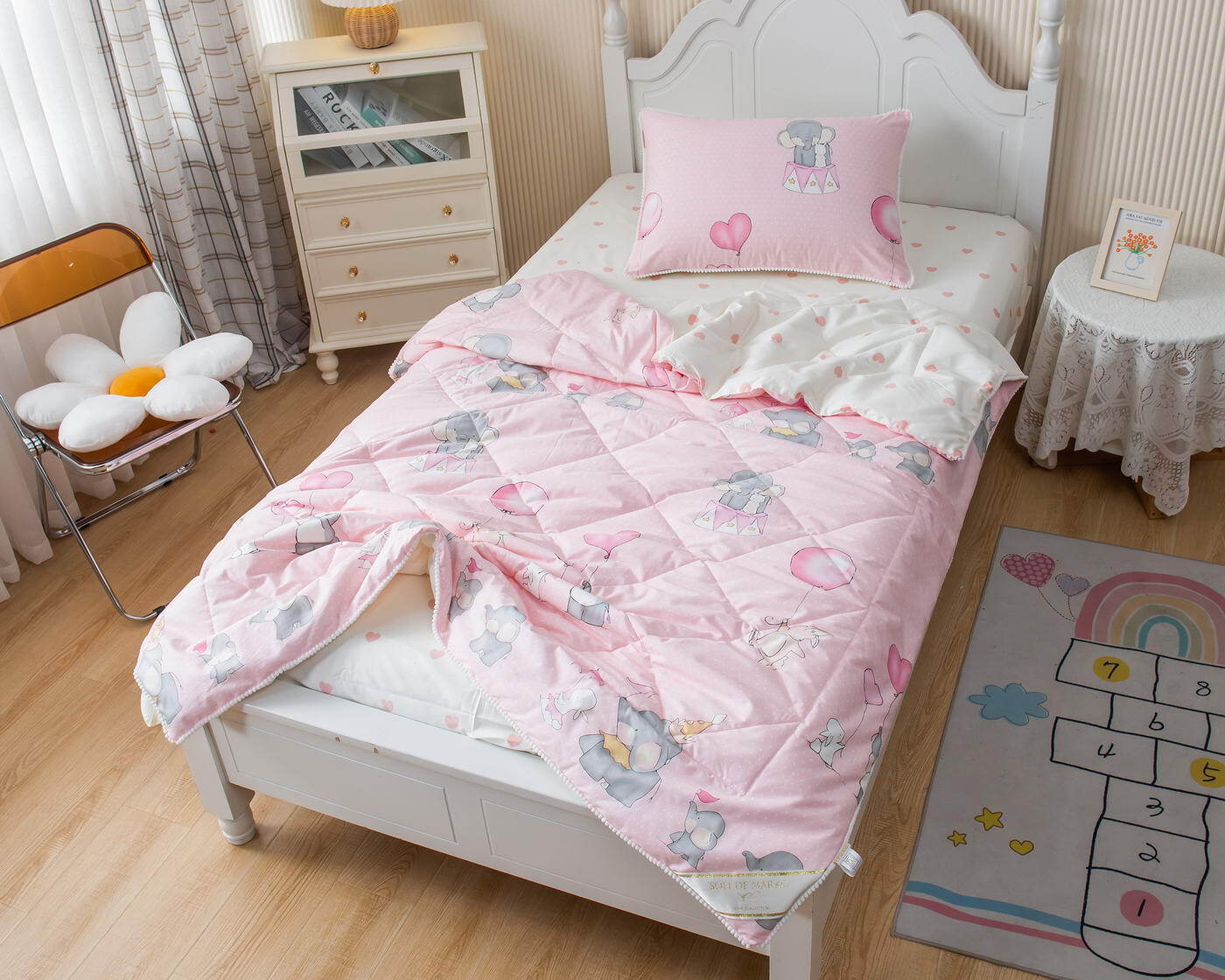 Само одеяло тонкое и легкое, но под ним ребенку не будет холодно зимой или жарко летом. Такое одеяло можно использовать в любое время года, 100% хлопок гарантирует качественный сон, т.к. натуральная ткань хорошо впитывает влагу и позволяет коже дышать. Натуральные материалы не вызывают аллергии. Огромная палитра оттенков и яркие дизайны комплектов понравятся детям и подросткам.