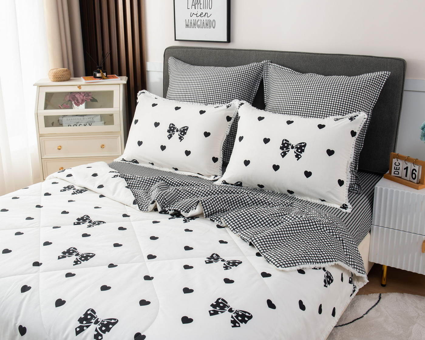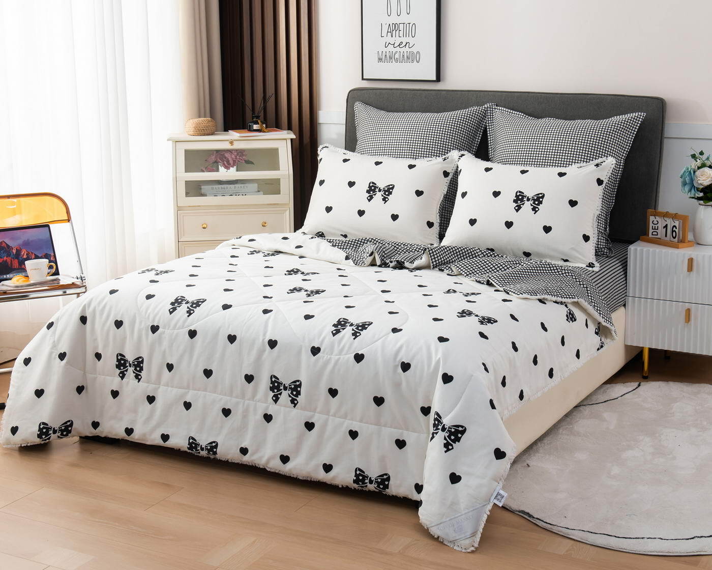 В комплекты комфортеров с одеялом Бернадетт входят наволочки, простыня и легкое всесезонное одеяло. Оцените это современное и очень удобное решение, которое идеально подходит тем, кто не любит возиться с пододеяльниками.