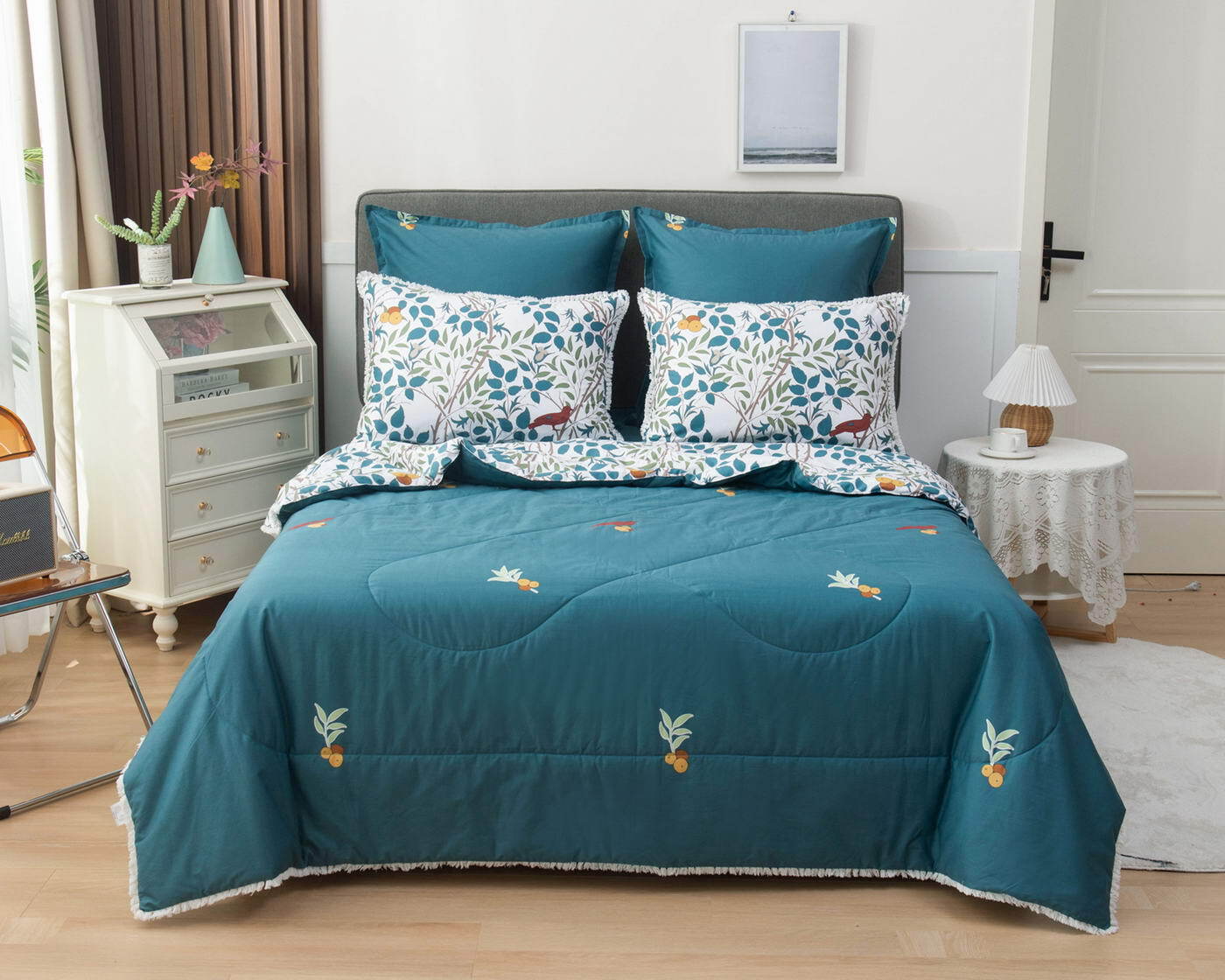 Набор с одеялом прослужит вам достаточно долго без потери своего качества, а рисунок не потускнеет даже после стирок. Комплект легко стирается в обычной машине и также легко гладится.