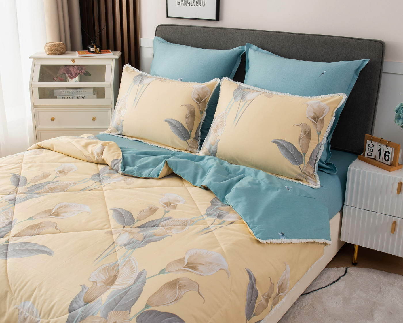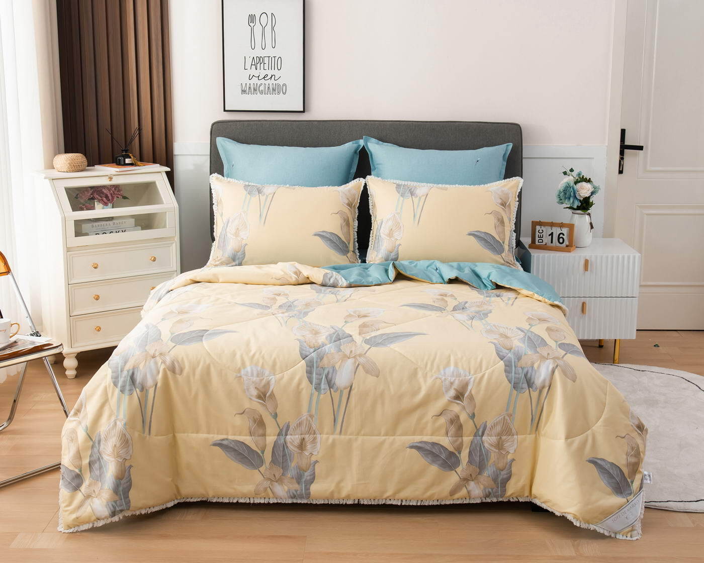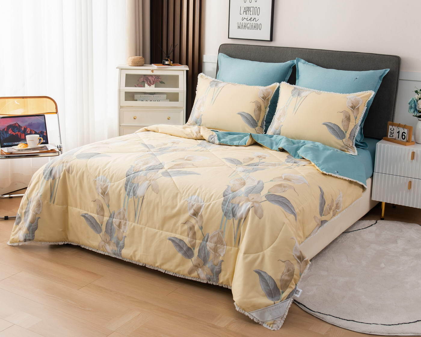 В комплекты комфортеров с одеялом Бернадетт входят наволочки, простыня и легкое всесезонное одеяло. Оцените это современное и очень удобное решение, которое идеально подходит тем, кто не любит возиться с пододеяльниками.