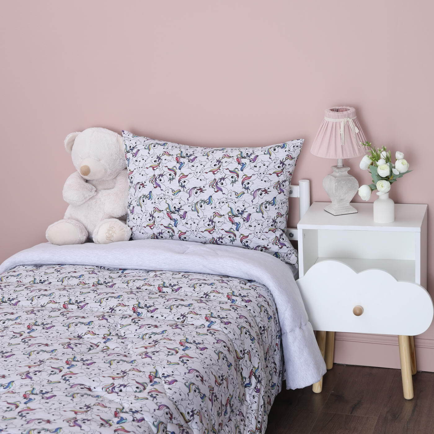 В комплекты комфортеров с одеялом входят наволочка, простыня на резинке и легкое всесезонное одеяло. Это современное и очень удобное решение идеально подходит всем, кто не любит возиться с пододеяльниками. Само одеяло тонкое и легкое, но под ним ребенку не будет холодно зимой или жарко летом. Такое одеяло можно использовать в любое время года, 100% хлопок гарантирует качественный сон, т.к. натуральная ткань хорошо впитывает влагу и позволяет коже дышать. Простыня на резинке надежно фиксируется и не сбивается во время сна. Натуральные материалы не вызывают аллергии. Огромная палитра оттенков и яркие дизайны комплектов понравятся детям и подросткам. Набор с одеялом прослужит долго без потери качества, а рисунок не потускнеет даже после множества стирок. Комплект легко стирается в обычной машине и также легко гладится. Наборы упакованы в красивые подарочные коробки и могут послужить отличным решением для подарка.
