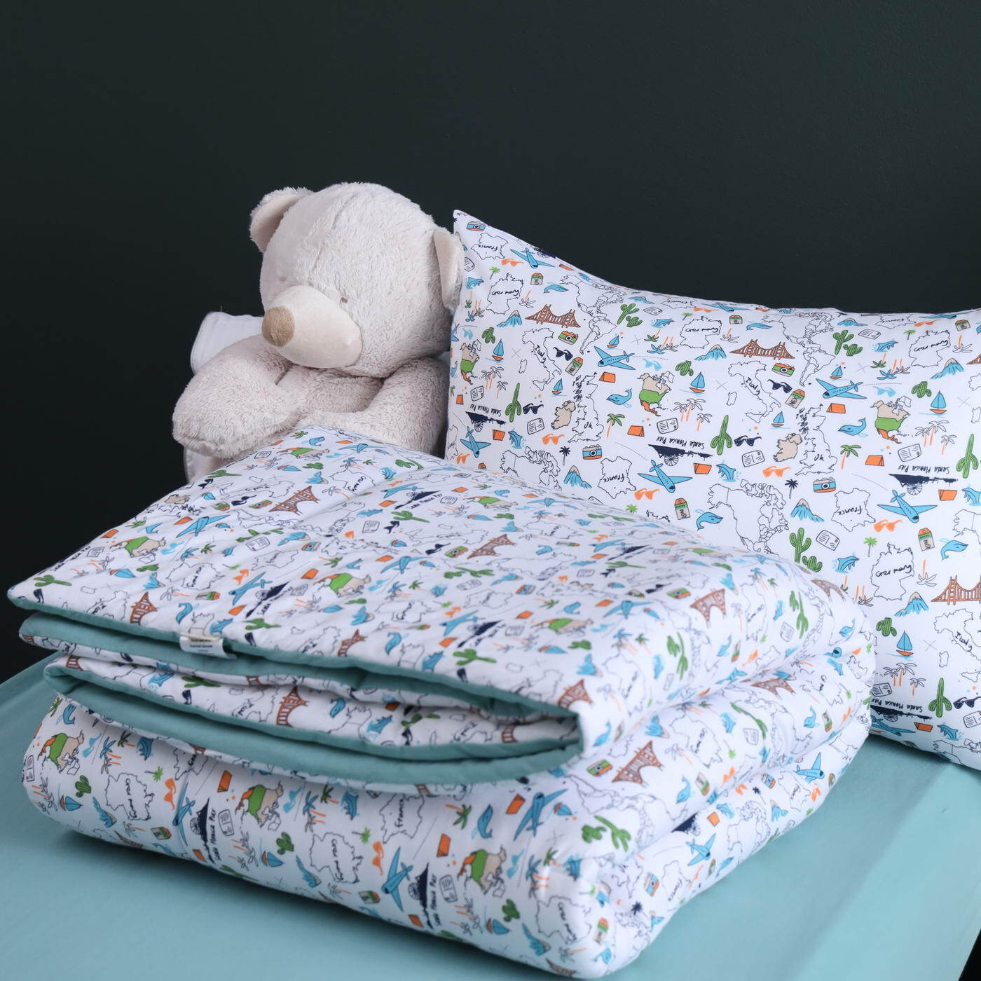 В комплекты комфортеров с одеялом входят наволочка, простыня на резинке и легкое всесезонное одеяло. Это современное и очень удобное решение идеально подходит всем, кто не любит возиться с пододеяльниками. Само одеяло тонкое и легкое, но под ним ребенку не будет холодно зимой или жарко летом. Такое одеяло можно использовать в любое время года, 100% хлопок гарантирует качественный сон, т.к. натуральная ткань хорошо впитывает влагу и позволяет коже дышать. Простыня на резинке надежно фиксируется и не сбивается во время сна. Натуральные материалы не вызывают аллергии. Огромная палитра оттенков и яркие дизайны комплектов понравятся детям и подросткам. Набор с одеялом прослужит долго без потери качества, а рисунок не потускнеет даже после множества стирок. Комплект легко стирается в обычной машине и также легко гладится. Наборы упакованы в красивые подарочные коробки и могут послужить отличным решением для подарка.