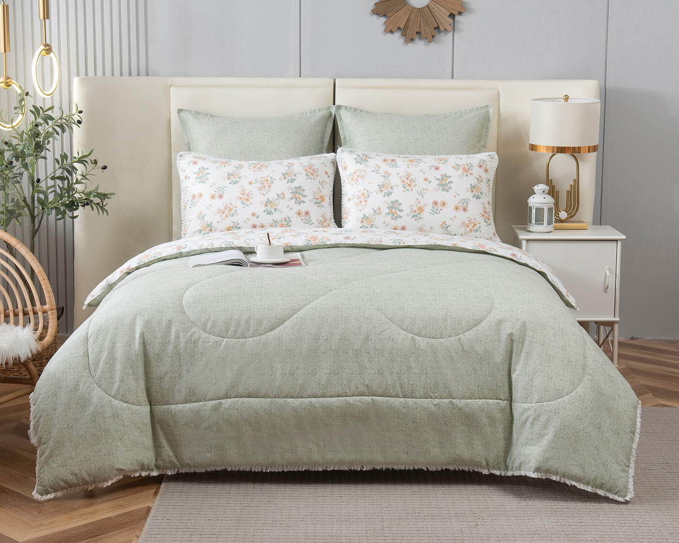 В комплекты комфортеров с одеялом Бернадетт входят наволочки, простыня и легкое всесезонное одеяло. Оцените это современное и очень удобное решение, которое идеально подходит тем, кто не любит возиться с пододеяльниками.