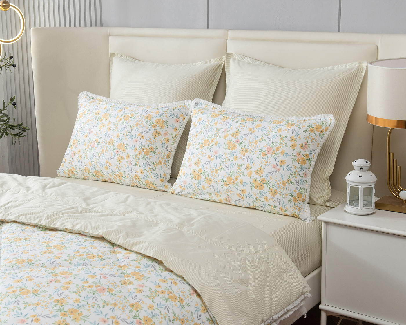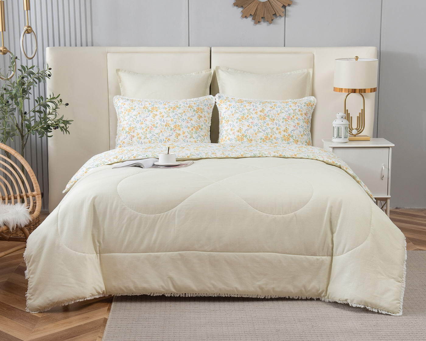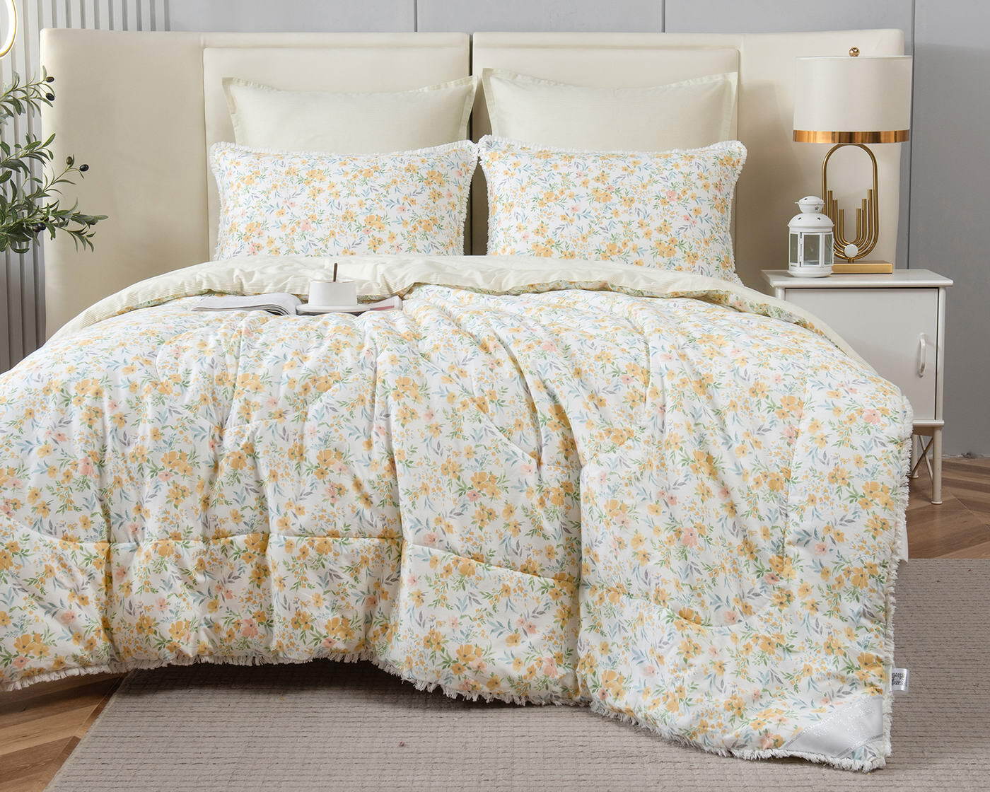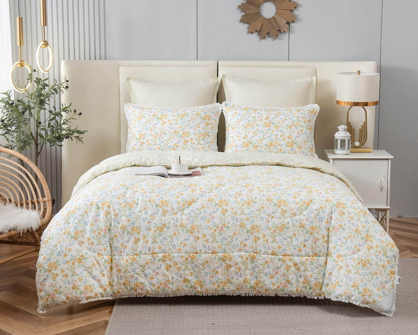 В комплекты комфортеров с одеялом Бернадетт входят наволочки, простыня и легкое всесезонное одеяло. Оцените это современное и очень удобное решение, которое идеально подходит тем, кто не любит возиться с пододеяльниками. Само одеяло тонкое и легкое, но под ним вам не будет холодно зимой или жарко летом. Такое одеяло можно использовать в любое время года, 100% хлопок гарантирует качественный сон, т.к. натуральная ткань не вызывает аллергии, хорошо впитывает влагу и позволяет коже дышать. Прочная и красивая ткань сатин, из которого выполнен комплект, мягкая и гладкая на ощупь, при этом вещи не теряют форму. Набор с одеялом прослужит вам достаточно долго без потери своего качества, а рисунок не потускнеет даже после стирок. Комплект легко стирается в обычной машине и также легко гладится. В нашем магазине представлены комплекты в разных тонах и с различными рисунками на выбор. Наборы упакованы в красивые подарочные коробки и могут послужить отличным решением для подарка.