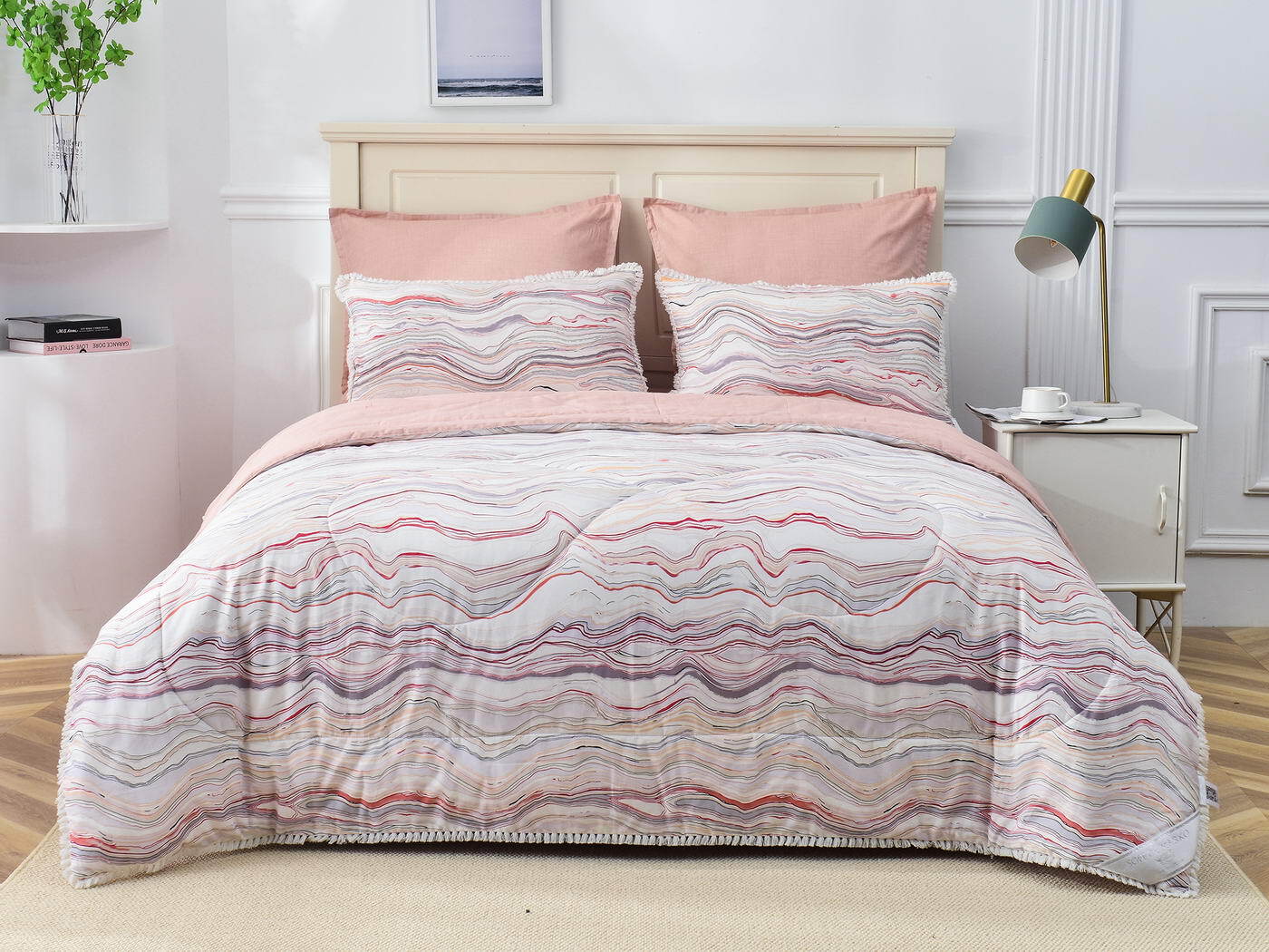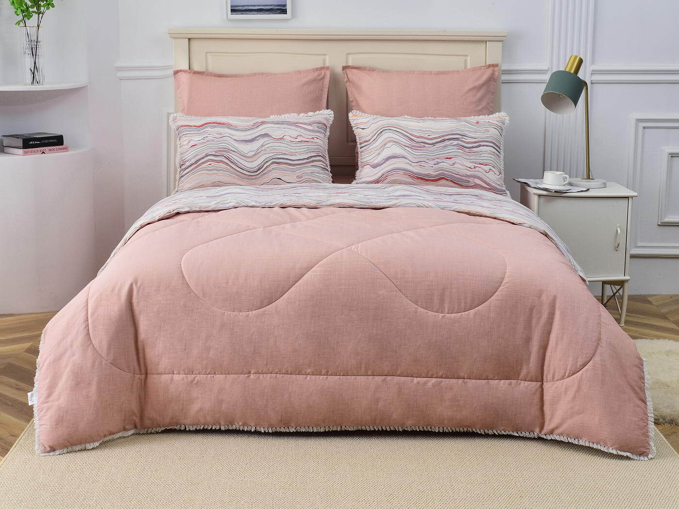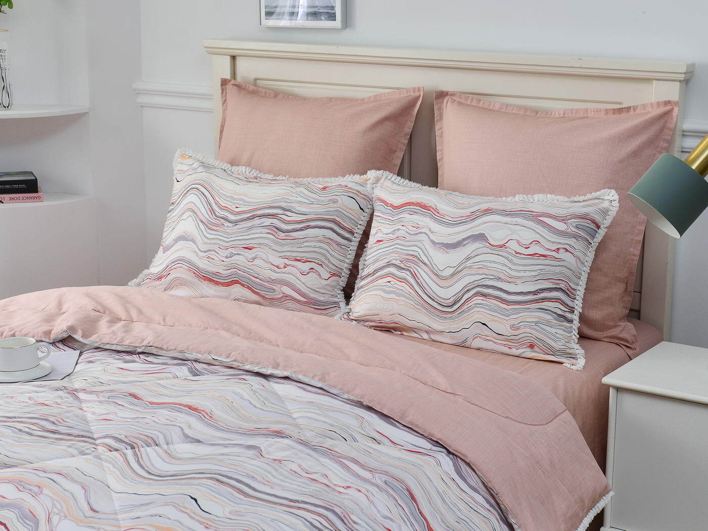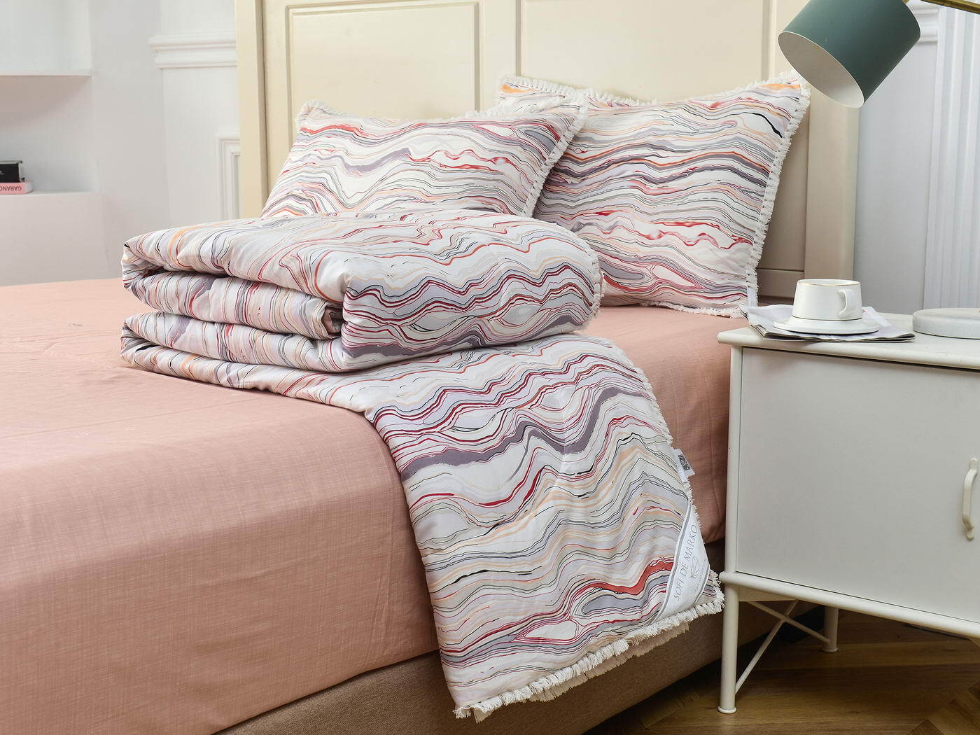 В комплекты комфортеров с одеялом Бернадетт входят наволочки, простыня и легкое всесезонное одеяло. Оцените это современное и очень удобное решение, которое идеально подходит тем, кто не любит возиться с пододеяльниками. Само одеяло тонкое и легкое, но под ним вам не будет холодно зимой или жарко летом. Такое одеяло можно использовать в любое время года, 100% хлопок гарантирует качественный сон, т.к. натуральная ткань не вызывает аллергии, хорошо впитывает влагу и позволяет коже дышать. Прочная и красивая ткань сатин, из которого выполнен комплект, мягкая и гладкая на ощупь, при этом вещи не теряют форму. Набор с одеялом прослужит вам достаточно долго без потери своего качества, а рисунок не потускнеет даже после стирок. Комплект легко стирается в обычной машине и также легко гладится. В нашем магазине представлены комплекты в разных тонах и с различными рисунками на выбор. Наборы упакованы в красивые подарочные коробки и могут послужить отличным решением для подарка.