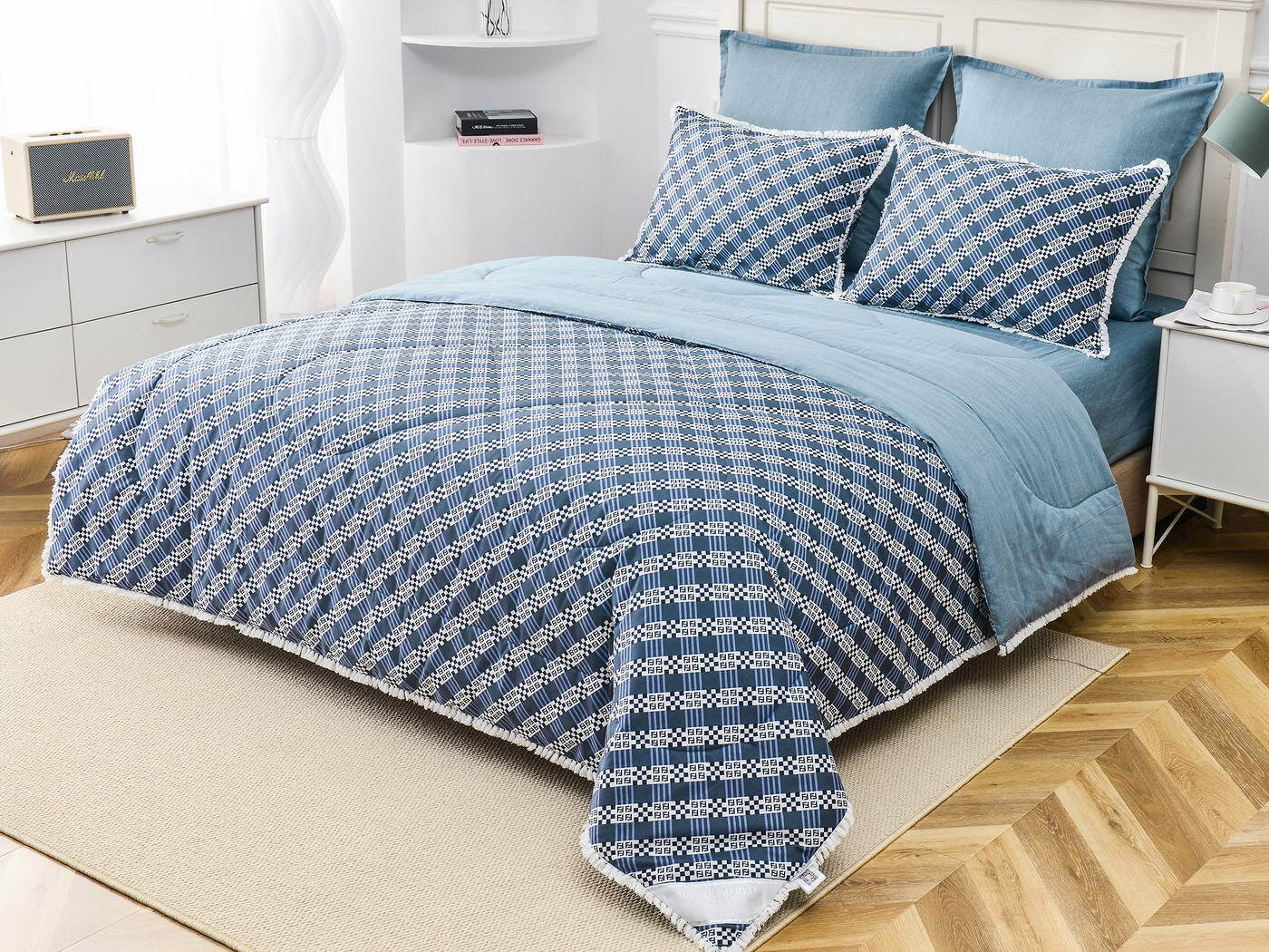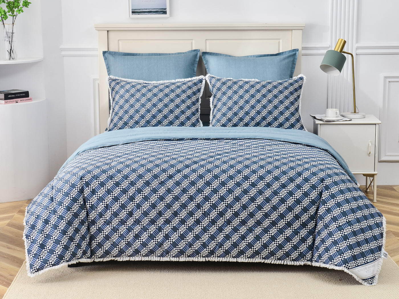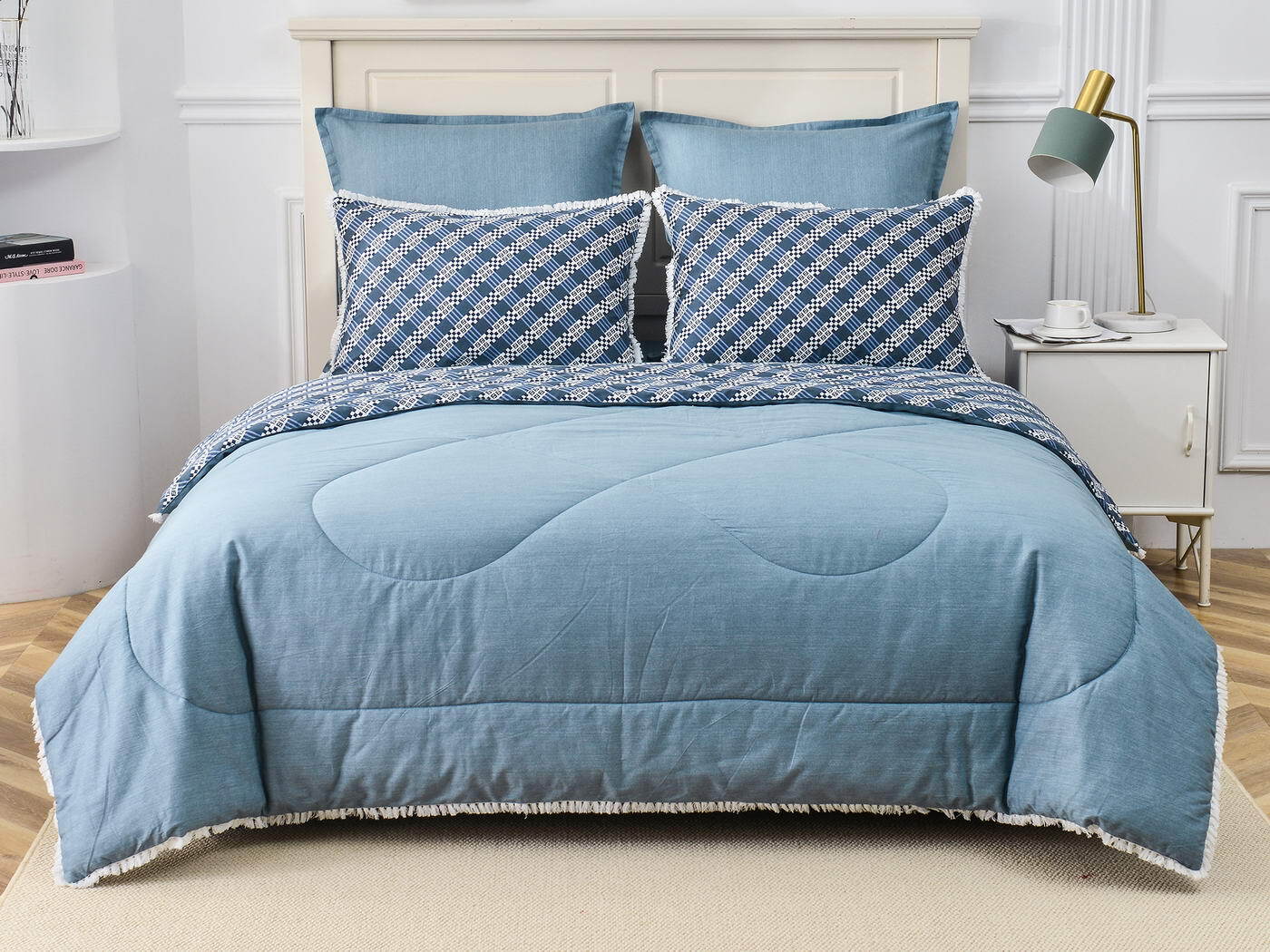 В комплекты комфортеров с одеялом Бернадетт входят наволочки, простыня и легкое всесезонное одеяло. Оцените это современное и очень удобное решение, которое идеально подходит тем, кто не любит возиться с пододеяльниками. Само одеяло тонкое и легкое, но под ним вам не будет холодно зимой или жарко летом. Такое одеяло можно использовать в любое время года, 100% хлопок гарантирует качественный сон, т.к. натуральная ткань не вызывает аллергии, хорошо впитывает влагу и позволяет коже дышать. Прочная и красивая ткань сатин, из которого выполнен комплект, мягкая и гладкая на ощупь, при этом вещи не теряют форму. Набор с одеялом прослужит вам достаточно долго без потери своего качества, а рисунок не потускнеет даже после стирок. Комплект легко стирается в обычной машине и также легко гладится. В нашем магазине представлены комплекты в разных тонах и с различными рисунками на выбор. Наборы упакованы в красивые подарочные коробки и могут послужить отличным решением для подарка.