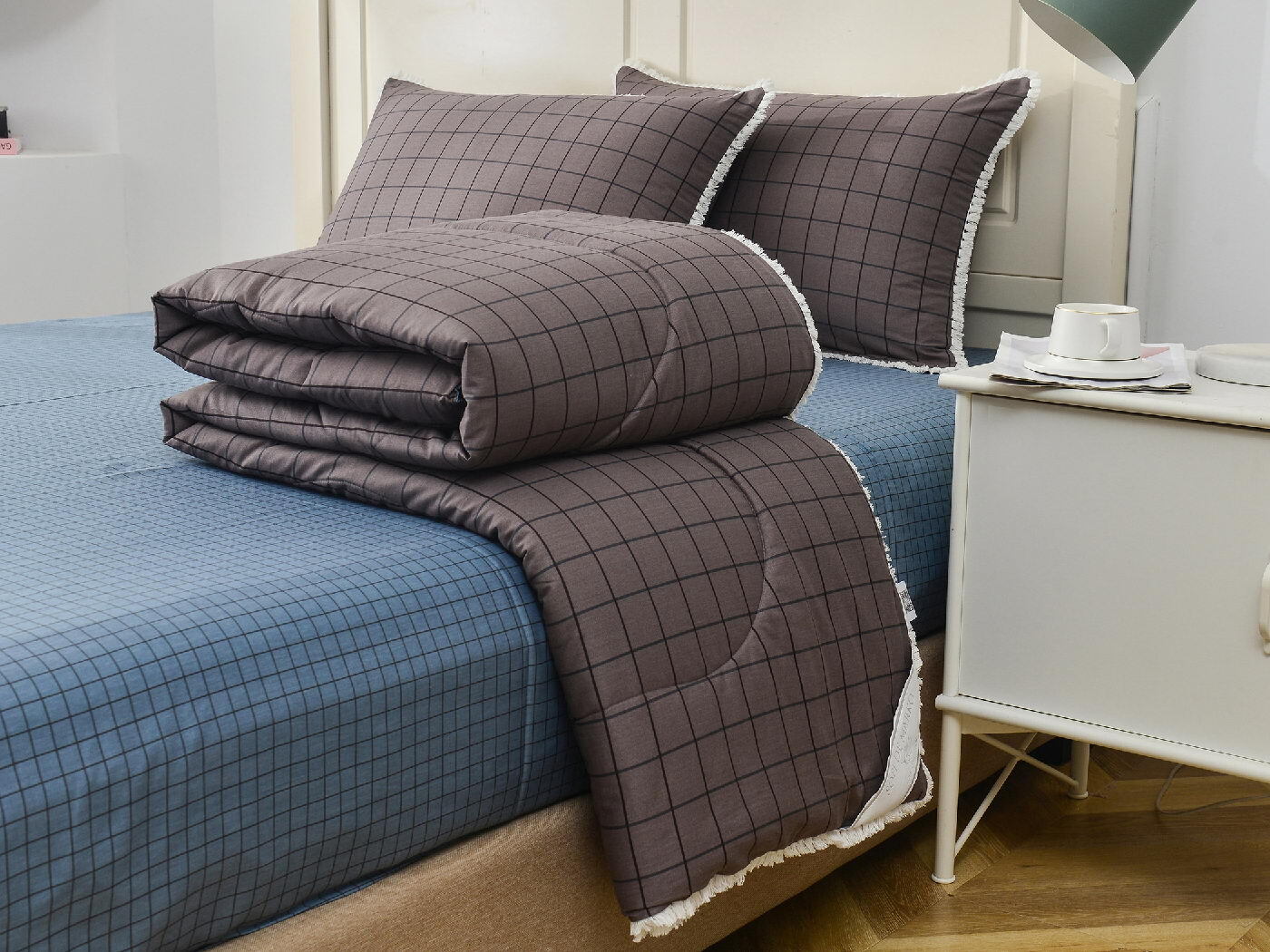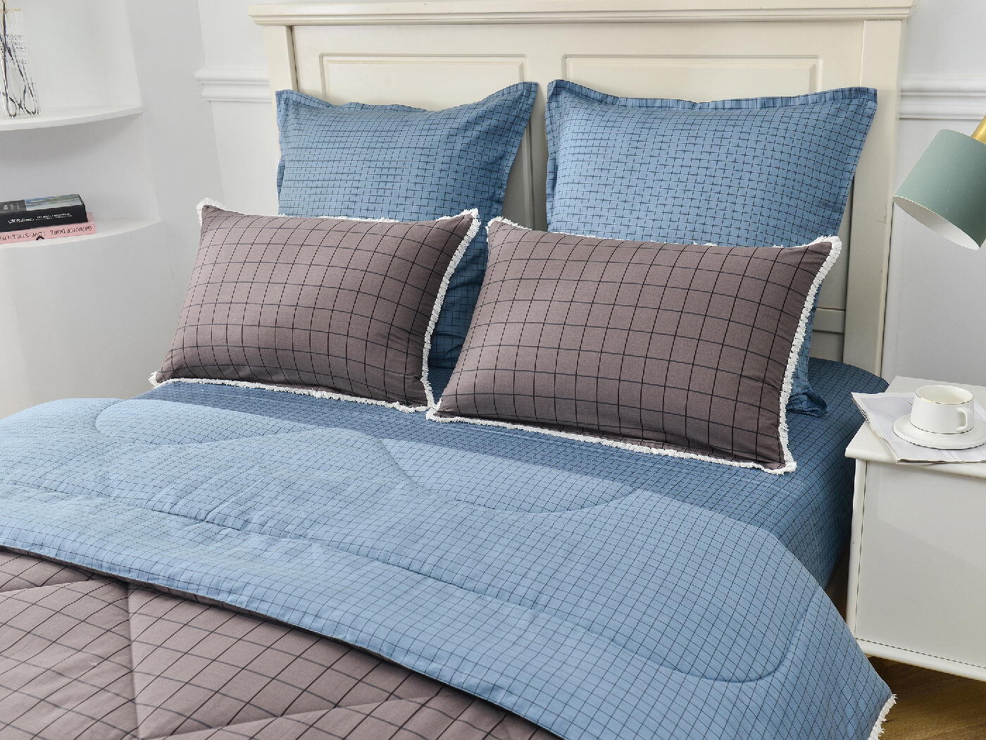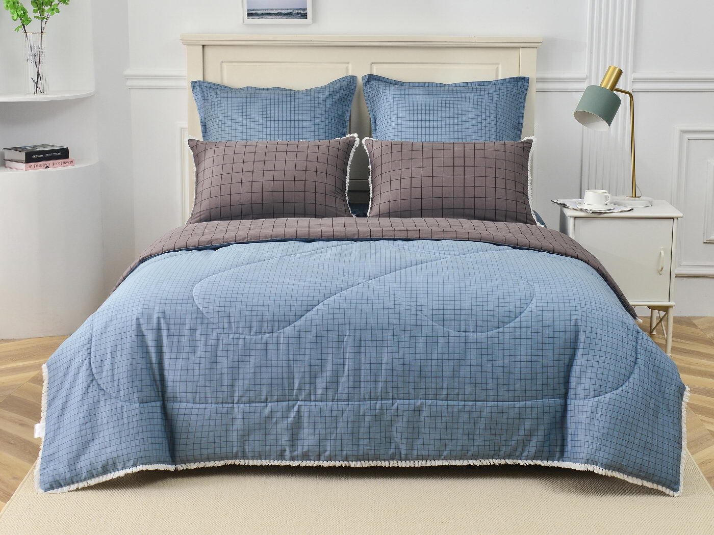 В комплекты комфортеров с одеялом Бернадетт входят наволочки, простыня и легкое всесезонное одеяло. Оцените это современное и очень удобное решение, которое идеально подходит тем, кто не любит возиться с пододеяльниками. Само одеяло тонкое и легкое, но под ним вам не будет холодно зимой или жарко летом. Такое одеяло можно использовать в любое время года, 100% хлопок гарантирует качественный сон, т.к. натуральная ткань не вызывает аллергии, хорошо впитывает влагу и позволяет коже дышать. Прочная и красивая ткань сатин, из которого выполнен комплект, мягкая и гладкая на ощупь, при этом вещи не теряют форму. Набор с одеялом прослужит вам достаточно долго без потери своего качества, а рисунок не потускнеет даже после стирок. Комплект легко стирается в обычной машине и также легко гладится. В нашем магазине представлены комплекты в разных тонах и с различными рисунками на выбор. Наборы упакованы в красивые подарочные коробки и могут послужить отличным решением для подарка.