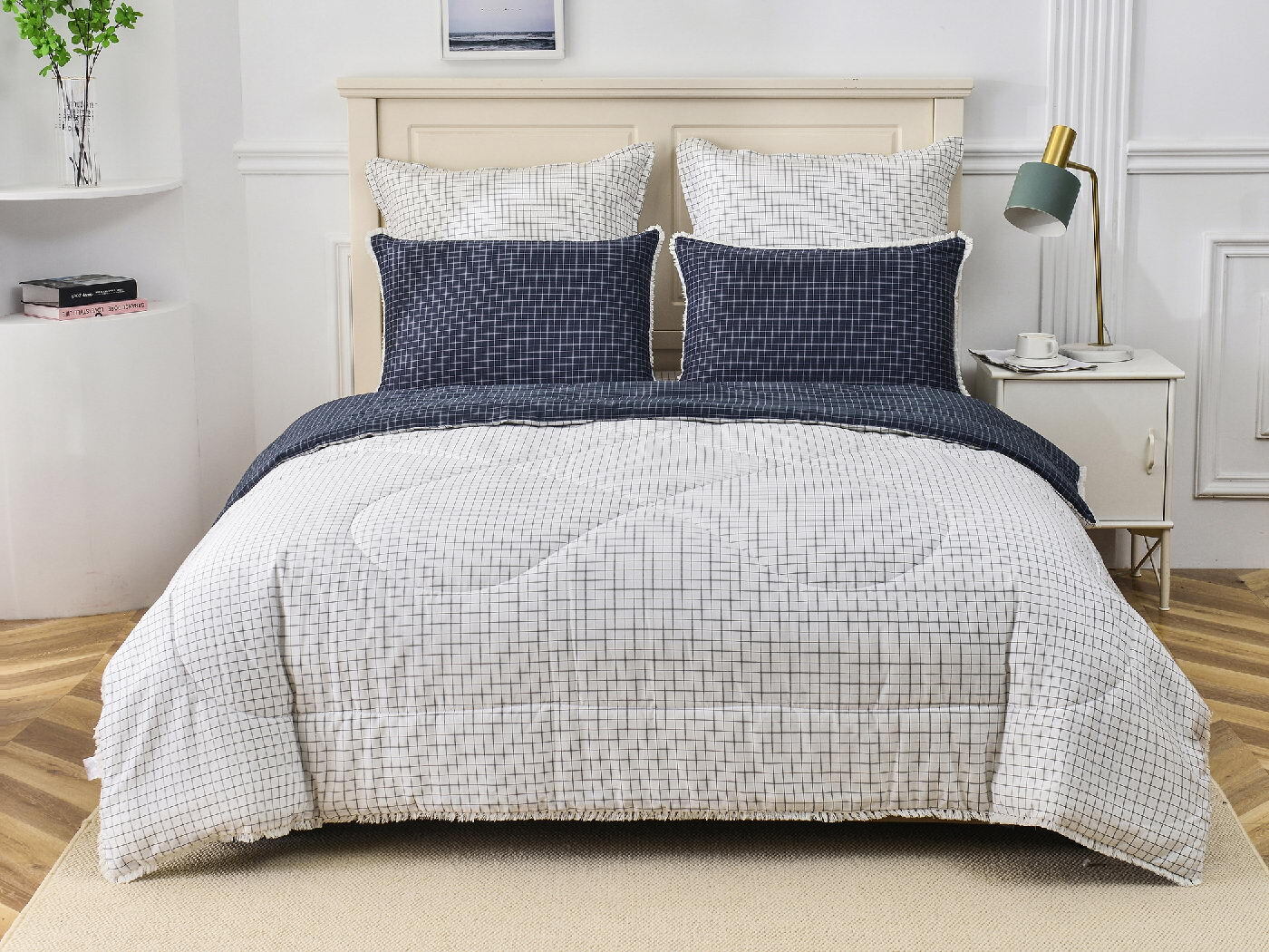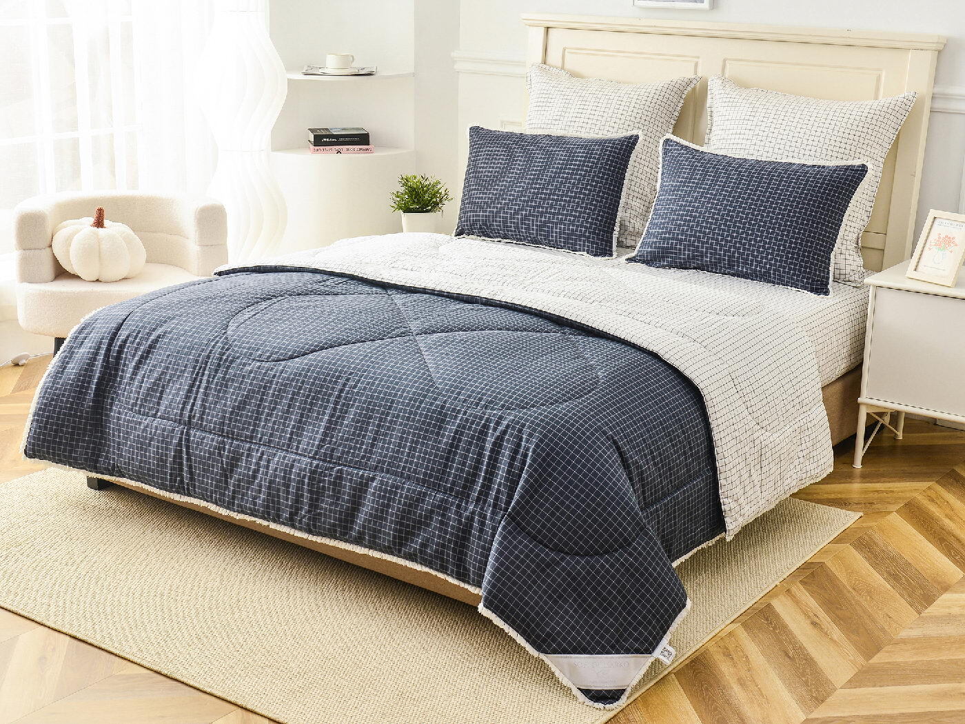 В комплекты комфортеров с одеялом Бернадетт входят наволочки, простыня и легкое всесезонное одеяло. Оцените это современное и очень удобное решение, которое идеально подходит тем, кто не любит возиться с пододеяльниками. Само одеяло тонкое и легкое, но под ним вам не будет холодно зимой или жарко летом. Такое одеяло можно использовать в любое время года, 100% хлопок гарантирует качественный сон, т.к. натуральная ткань не вызывает аллергии, хорошо впитывает влагу и позволяет коже дышать. Прочная и красивая ткань сатин, из которого выполнен комплект, мягкая и гладкая на ощупь, при этом вещи не теряют форму. Набор с одеялом прослужит вам достаточно долго без потери своего качества, а рисунок не потускнеет даже после стирок. Комплект легко стирается в обычной машине и также легко гладится. В нашем магазине представлены комплекты в разных тонах и с различными рисунками на выбор. Наборы упакованы в красивые подарочные коробки и могут послужить отличным решением для подарка.