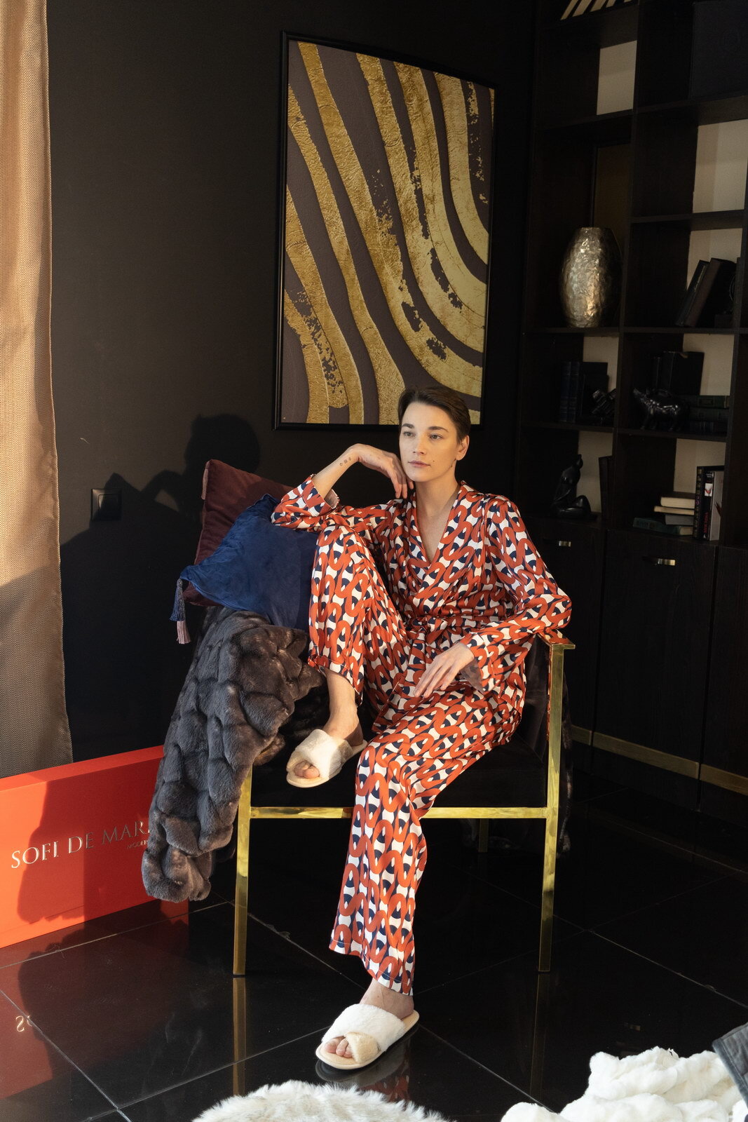 Эти домашние костюмы обладают уникальными свойствами в удобстве ношения. Каждый костюм включает в себя кофту на запахе, созданную для того, чтобы обволакивать ваше тело нежными объятиями комфорта. Изысканный пояс подчеркивает вашу талию, добавляя изящества и стиля к вашему образу.