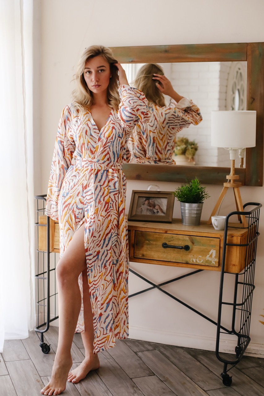 Вискоза высокого качества обеспечивает мягкость и приятную текстуру ткани, которая нежно касается кожи. Халат доступен в трёх изысканных цветах.