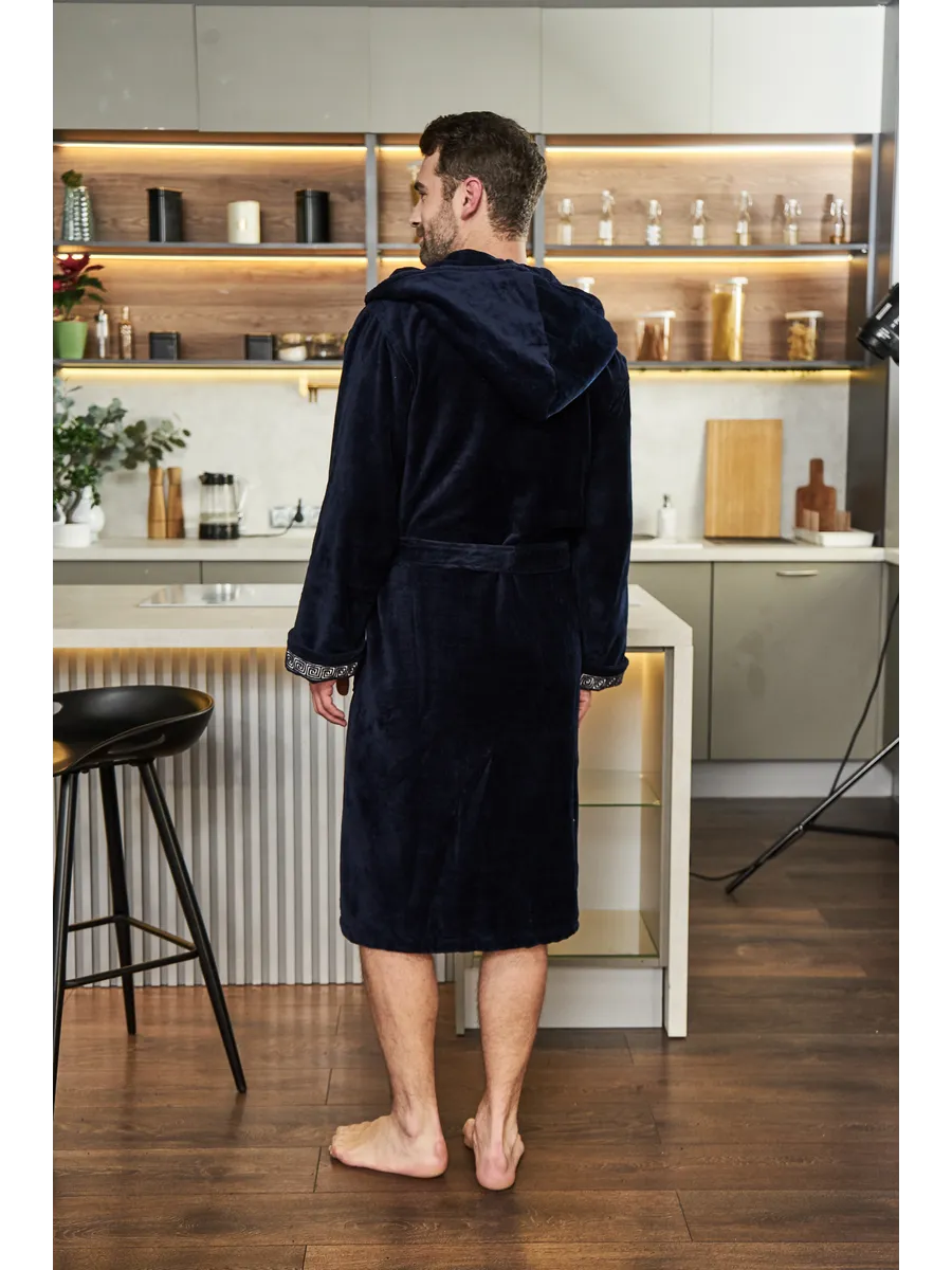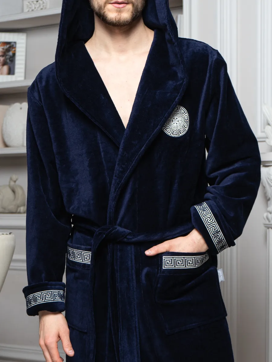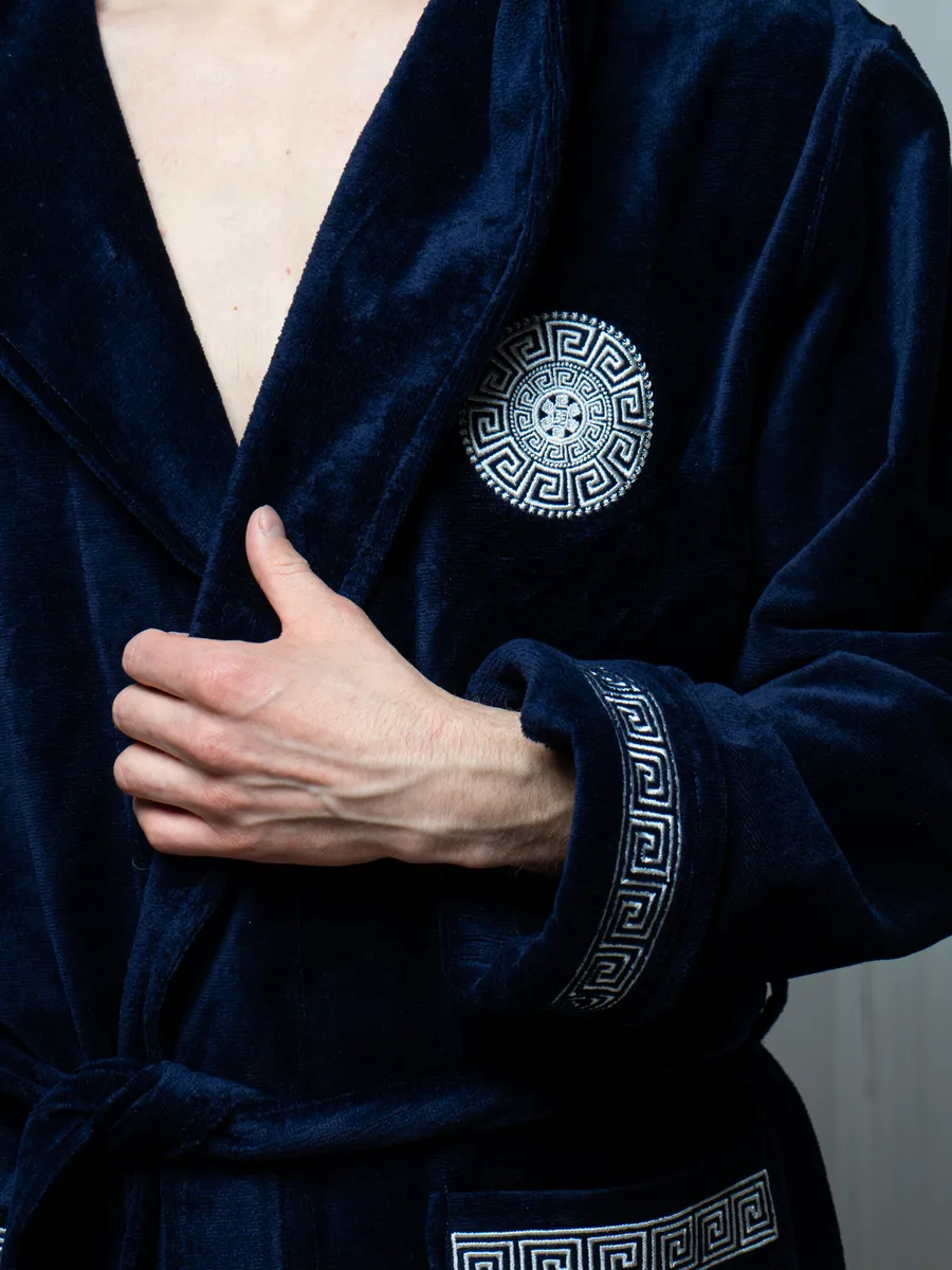 Внутренняя сторона ткани на основе хлопка, поэтому приятна тактильными ощущениями и натуральностью к телу. Лицевая сторона - велюр из микрофибры, придающий халату легкость и необычайную мягкость.