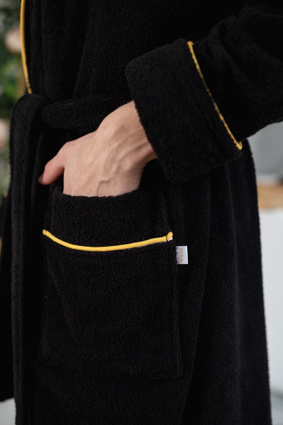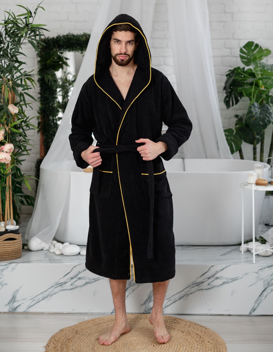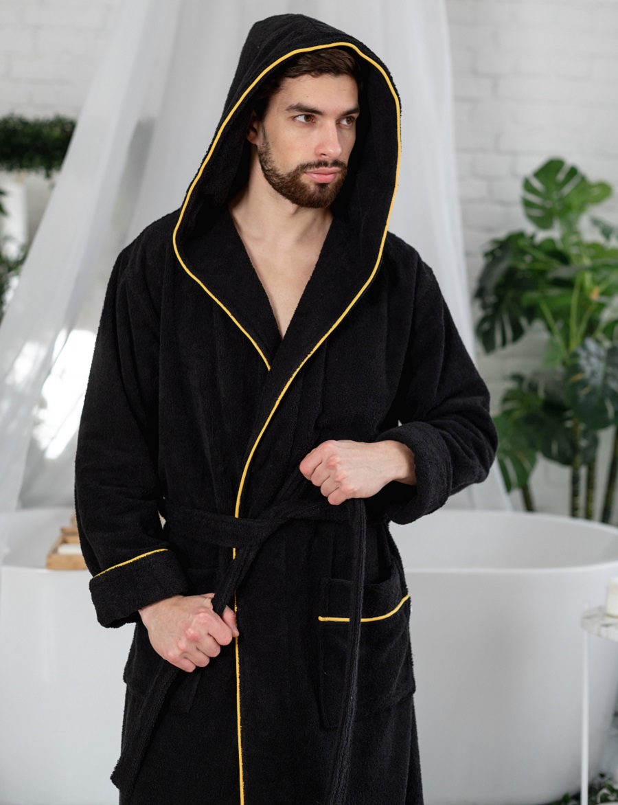 Внешняя сторона халата - велюровая(велюр имеет приятный приглушенный матовый отблеск и противостоит образованию затяжек), а внутренняя сторона из петельчатой махры, создающей легкий массажирующий эффект