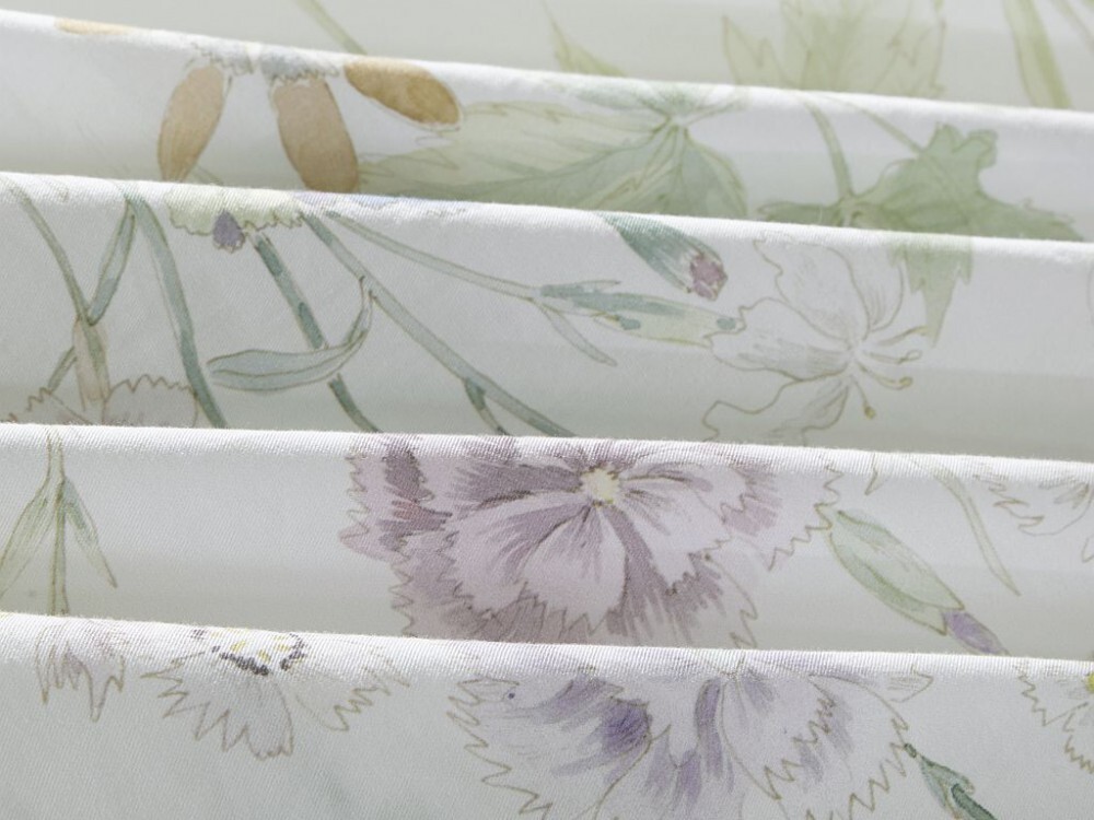 Гладкая и прочная ткань  из 100% хлопка с компьютерной печатью, полученная путем особого сатинового переплетения нитей (лицевая сторона состоит из тонких, закрученных нитей, а основа — из более плотных), структура ткани похожа структуру джинсового переплетения "по диагонали". Благодаря своим свойствам — мягкости, воздухообмену, прочности и отсутствию аллергических реакций — сатин является комфортным и долговечным материалом.