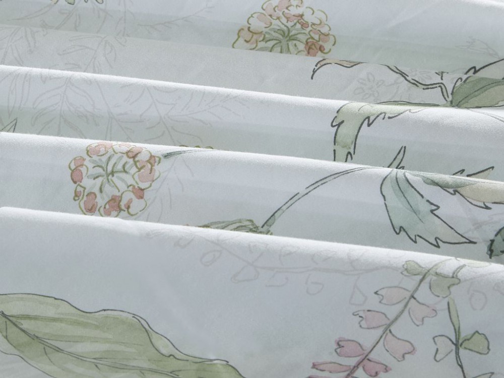 Гладкая и прочная ткань  из 100% хлопка с компьютерной печатью, полученная путем особого сатинового переплетения нитей (лицевая сторона состоит из тонких, закрученных нитей, а основа — из более плотных), структура ткани похожа структуру джинсового переплетения "по диагонали". Благодаря своим свойствам — мягкости, воздухообмену, прочности и отсутствию аллергических реакций — сатин является комфортным и долговечным материалом.