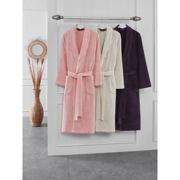 Женский махровый халат Soft Cotton Stella (средней длины) отличается элегантной кружевной отделкой на шальке и карманах.