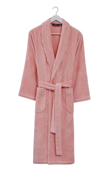 Женский махровый халат Soft Cotton Stella (средней длины) отличается элегантной кружевной отделкой на шальке и карманах.