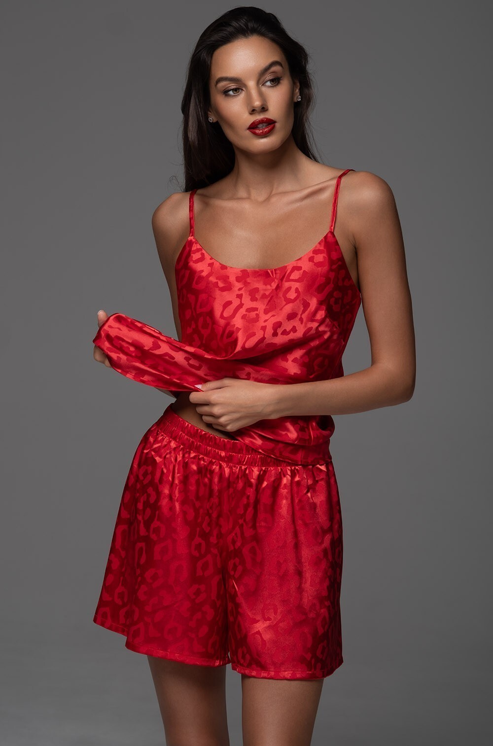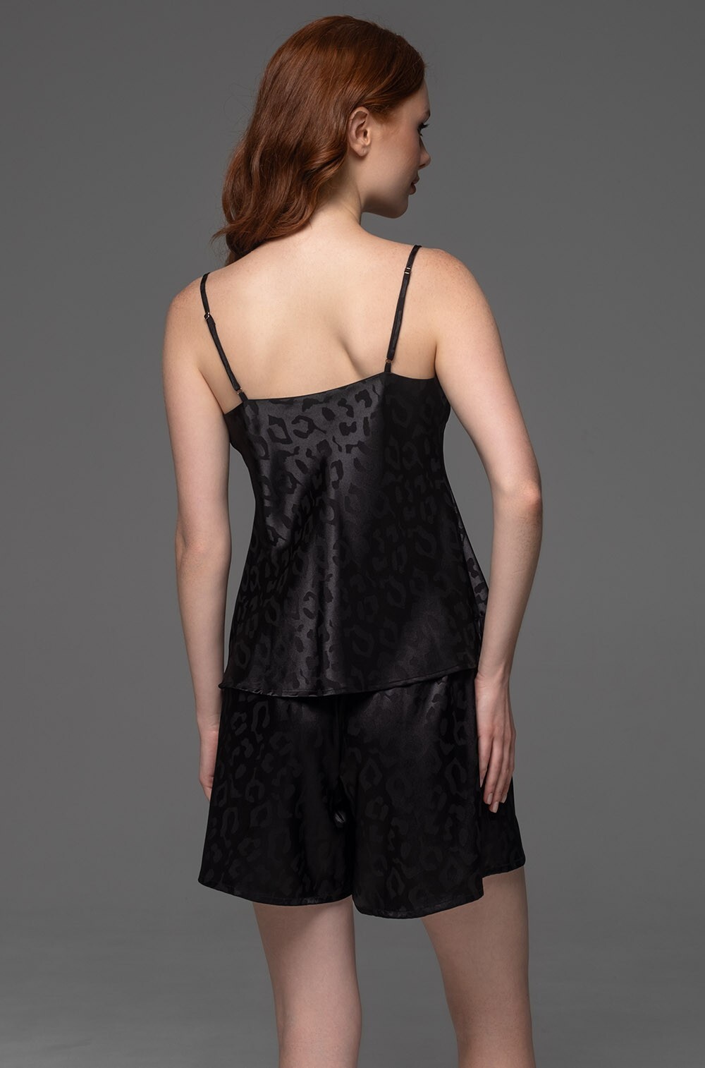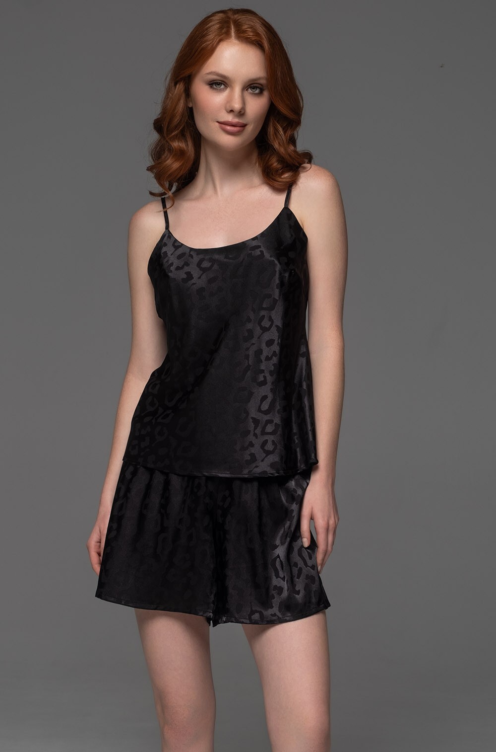 Комплект Mia-Amore состоит из топа на тонких бретелях и шорт. Изделия комплекта выполнены из искусственного шелка на жаккардовой основе.