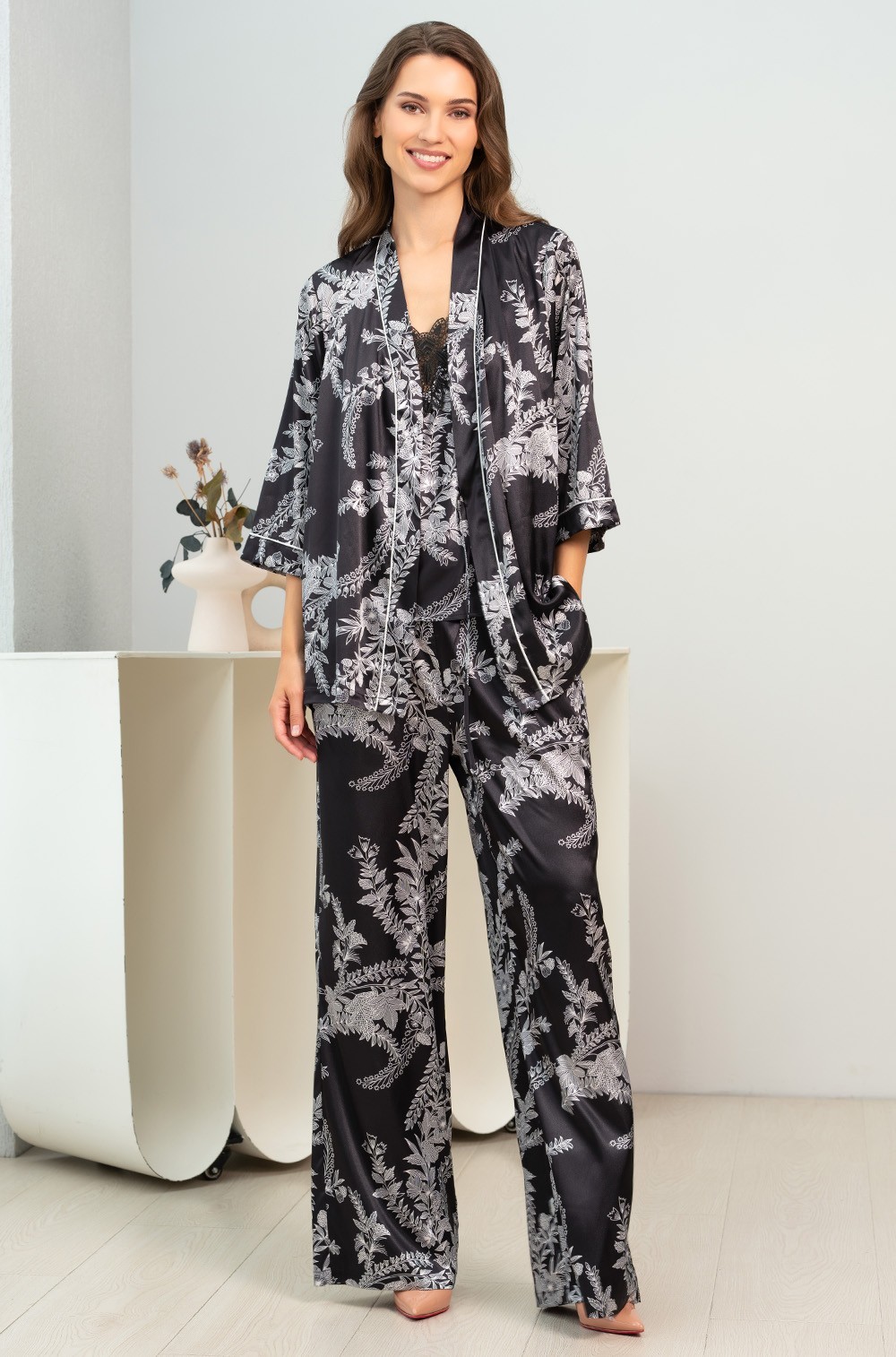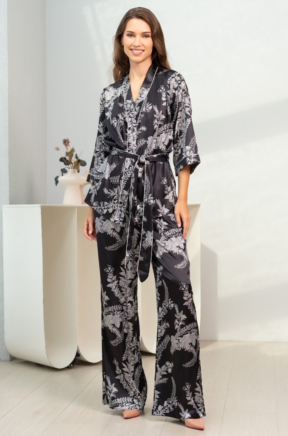 Состав: 70% натуральный шелк, 25% полиэстер, 5% эластан.