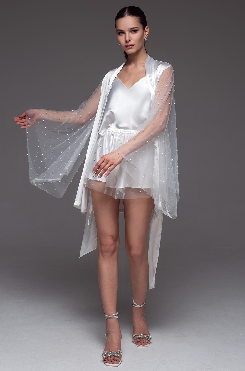 Состав: 70% натуральный шелк, 25% полиэстер, 5% эластан.