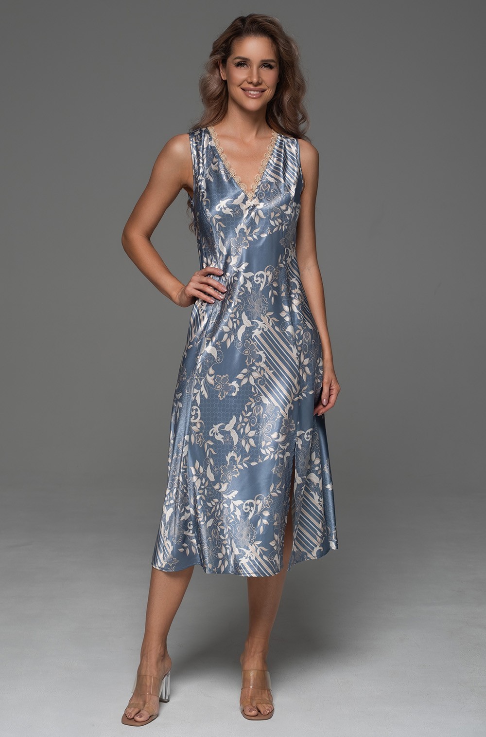 Состав: 70% натуральный шёлк, 25% полиэстер, 5% эластан.
