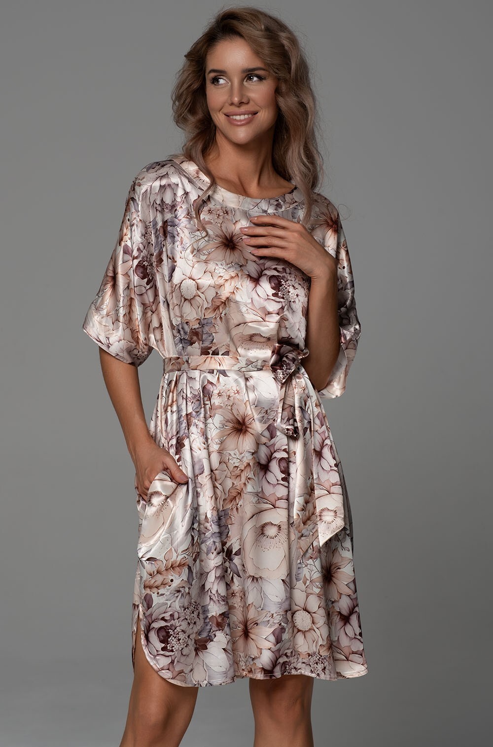 Состав: 70% натуральный шёлк, 25% полиэстер, 5% эластан.