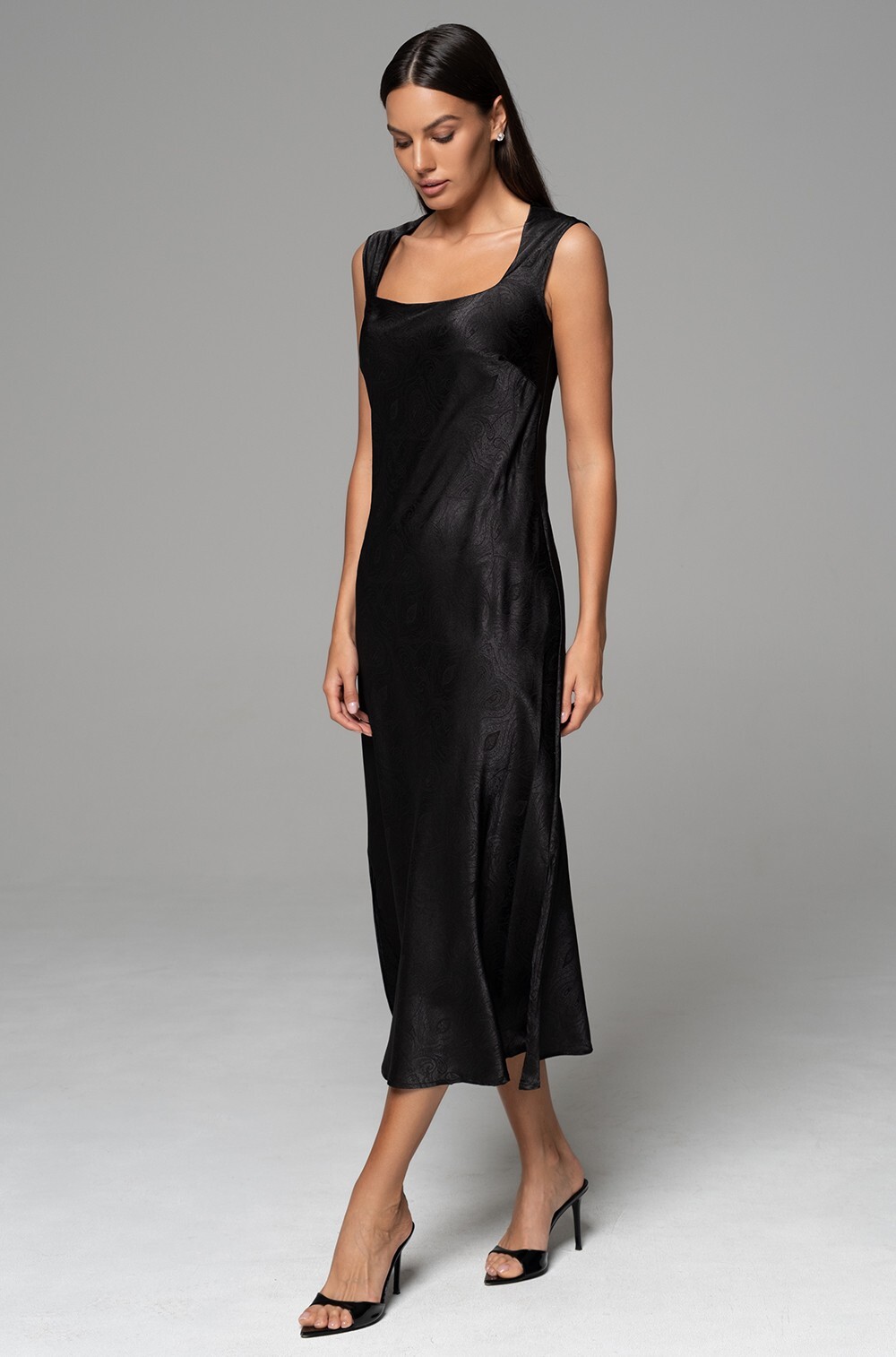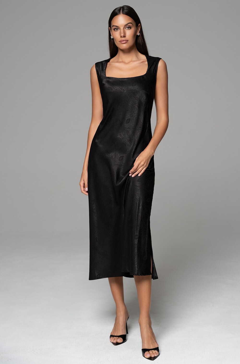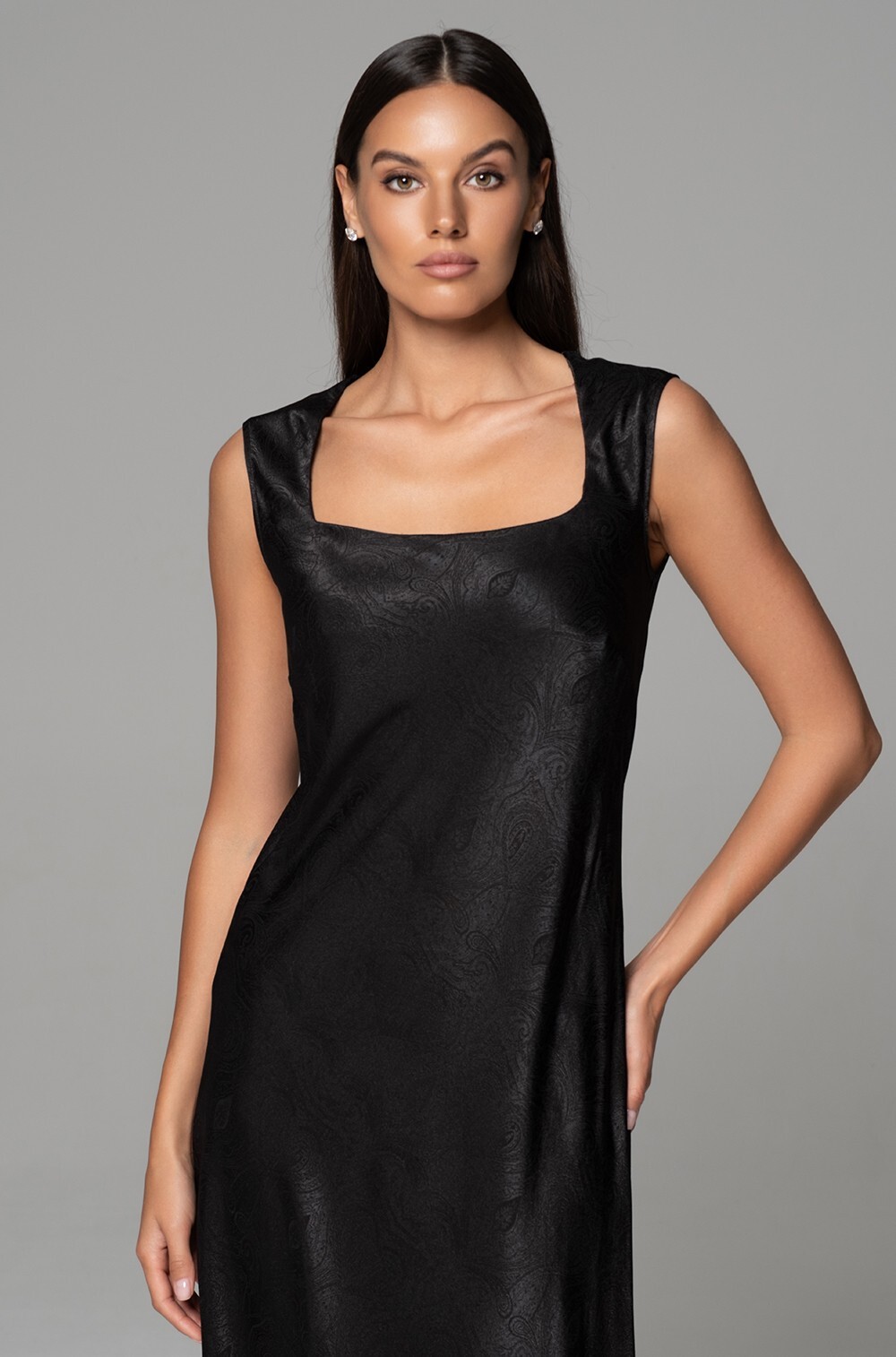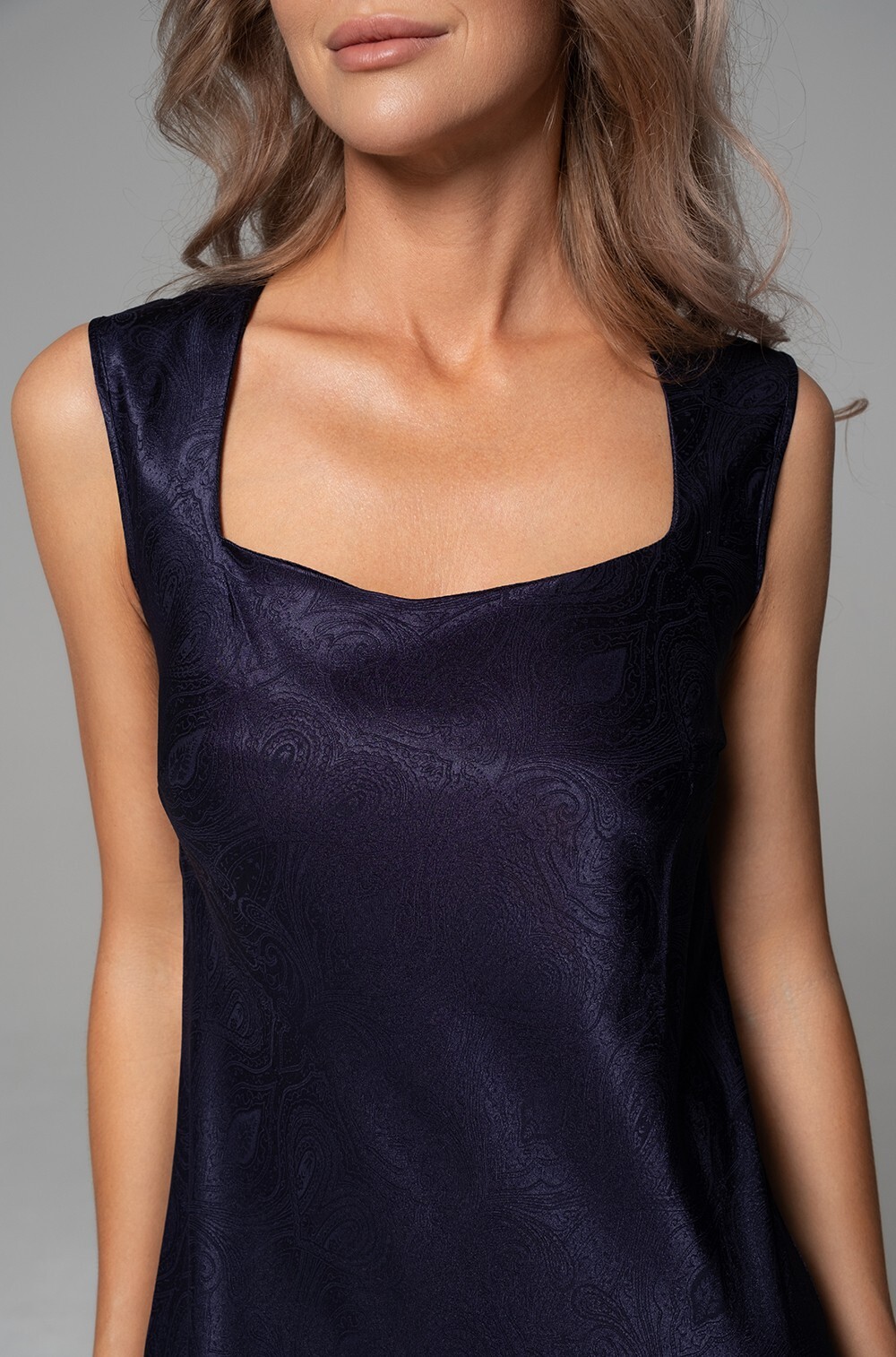 Эффектная длинная сорочка Mia-Amore на широких бретелях без подреза под грудью с вырезом «каре». Изделие выполнено из смесового шелкового жаккардового полотна. По низу боковых швов обработаны разрезы для свободы движения.