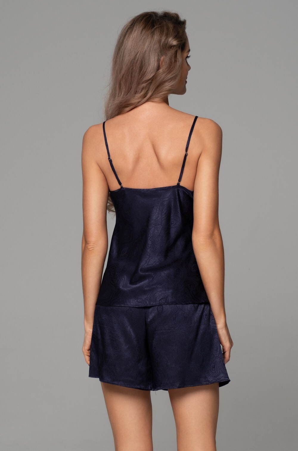 Комплект Mia-Amore состоит из топа на тонких бретелях и шорт. Изделия комплекта выполнены из смесового шелкового жаккардового полотна.