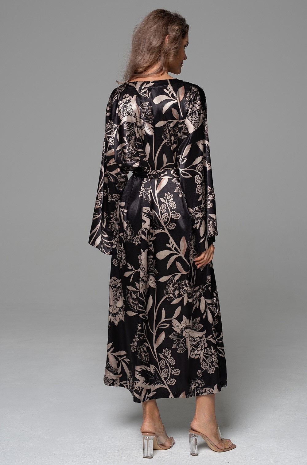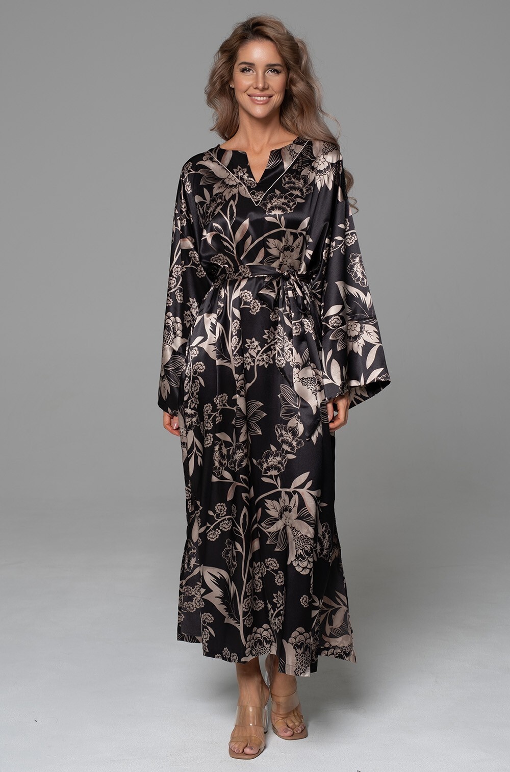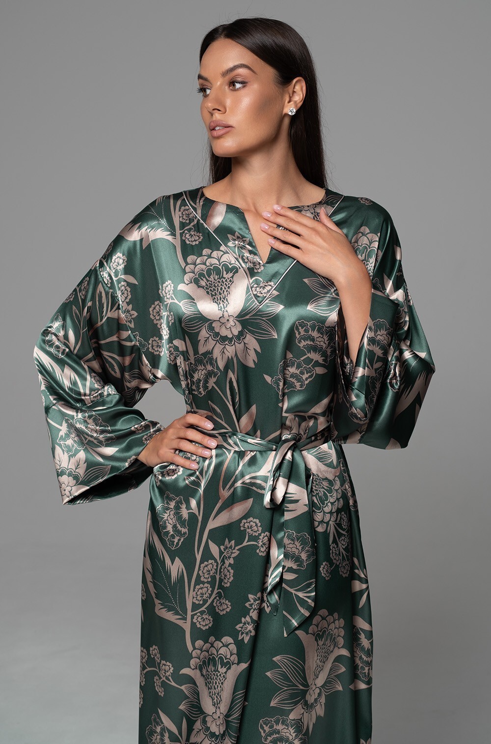 Длинная туника Mia-Amore выполнена из принтованного смесового шёлка.   По талии ширина туники регулируется широким двухсторонним поясом. В боковых швах карманы.